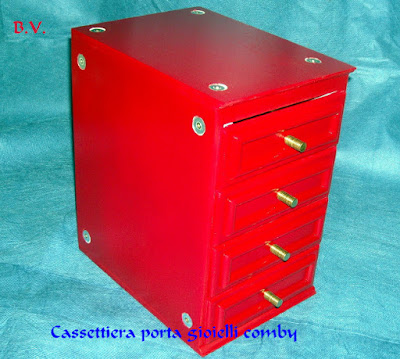 I vostri orecchini, anelli, bracciali, collane, sono sempre sparsi per tutta la casa? Ecco quello che fà per voi.Utile ed elegante cassettiera componibile, porta gioielli e orologi. Costruita interamente a mano con legno di pioppo spessore 1cm, e verniciata con vernici ecologiche. Ha4cassetti dove si può riporre il necessario per il trucco ed anche orecchini, collane, orologi, ecc... Si può avere nel colore desiderato ( da decidere dopo l' aquisto). Se acquistate più moduli e amate tutti i colori, si può verniciare ogni modulo in un colore diverso.