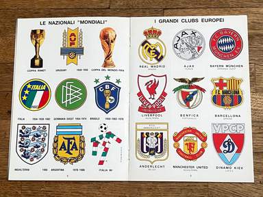 Album + Set Completo di figurine , edizione Panini , PANINI SPORT , composto da 53 Figurine , ancora da ritagliare . Le immagini della collezione raffigurano i piu grandi giocatori della storia del calcio ; gli stemmi delle nazionali piu' forti ; i logi delle squadre di club piu importanti ; una sezione dedicata ai giocatori della nazionale italiana ; 1 sezione dedicata alle organizzazioni del calcio mondiale . figurine dei calciatori : Pele , Maradona , Platini , Roberto Baggio , Sivori , Cruyff , Jascin , Eusebio , Beckenbauer , Zico , Rumenigge , Van Basten , Gullit , Baresi , Zenga , Vialli , Careca , Matthaus , Zoff , Facchetti , Rivera , Riva , Mazzola , Scirea , Paolo Rossi , Causio , Tardelli . Figurine della sezione Nazionali : logo coppa Rimet , logo coppa del mondo Fifa , logo Italia 90 , Italia , Brasile , Germania Ovest , Inghilterra , Argentina. Figurin delle squadre di club piu forti : Real Madrid , Bayern Monaco , Ajax , Liverpool , Benfica , Barcellona , Manchester United , Dinamo Kiev , Anderlecht . l'album e' fotografato integralmente , pagina per pagina . album in condizione generale come da foto ENG Album + Complete Set of stickers, Panini edition, PANINI SPORT, consisting of 53 stickers, still to be cut out. The images in the collection depict the greatest players in the history of football; the crests of the strongest national teams; the logos of the most important club teams; a section dedicated to the players of the Italian national team; 1 section dedicated to world football organizations. football players' stickers: Pele, Maradona, Platini, Roberto Baggio, Sivori, Cruyff, Jascin, Eusebio, Beckenbauer, Zico, Rumenigge, Van Basten, Gullit, Baresi, Zenga, Vialli, Careca, Matthaus, Zoff, Facchetti, Rivera, Riva, Mazzola, Scirea, Paolo Rossi, Causio, Tardelli. National section stickers: Rimet cup logo, Fifa world cup logo, Italy 90 logo, Italy, Brazil, West Germany, England, Argentina. Figures of the strongest clubs: Real Madrid, Bayern Munich, Ajax, Liverpool, Benfica, Barcelona, Manchester United, Dynamo Kiev, Anderlecht. the album is photographed in its entirety, page by page. album in general condition, as shown in the photos DTS Album + Komplettes Sticker-Set, Panini-Edition, PANINI SPORT, bestehend aus 53 Stickern, muss noch ausgeschnitten werden. Die Bilder in der Sammlung zeigen die größten Spieler in der Geschichte des Fußballs; die Wappen der stärksten Nationalmannschaften; die Logos der wichtigsten Vereinsmannschaften; eine Sektion, die den Spielern der italienischen Nationalmannschaft gewidmet ist; 1 Abschnitt für Weltfußballorganisationen. Aufkleber von Fußballspielern: Pele, Maradona, Platini, Roberto Baggio, Sivori, Cruyff, Jascin, Eusebio, Beckenbauer, Zico, Rumenigge, Van Basten, Gullit, Baresi, Zenga, Vialli, Careca, Matthäus, Zoff, Facchetti, Rivera, Riva , Mazzola, Scirea, Paolo Rossi, Causio, Tardelli. Aufkleber der nationalen Sektion: Rimet Cup-Logo, Fifa World Cup-Logo, Italy 90-Logo, Italien, Brasilien, Westdeutschland, England, Argentinien. Zahlen der stärksten Klubs: Real Madrid, Bayern München, Ajax, Liverpool, Benfica, Barcelona, Manchester United, Dynamo Kiew, Anderlecht. Das Album wird in seiner Gesamtheit Seite für Seite fotografiert. Album in allgemeinem Zustand, wie auf den Fotos gezeigt FRA