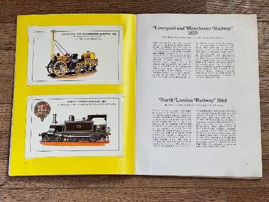 • ألبوم الملصقات، إصدار Colourmaster، الأصلي من عام 1968. القاطرات البخارية البريطانية. ألبوم فارغ + مجموعة كاملة، 30 ملصقًا. الملصقات ليست ملتصقة، ولكن توجد زوايا شفافة لحامل الصور في الألبوم، حيث تم إدخال الملصقات. تصور الصور الموجودة في المجموعة أنواعًا مختلفة من القاطرات البخارية، التي كانت في الخدمة لمختلف شركات السكك الحديدية في بريطانيا العظمى. نماذج النوع: صاروخ 1829، دبابة Adam 4-4-0 عام 1868، المحرك المزدوج الحاصل على براءة اختراع لروبرت فيرلي عام 1869، فئة أوروبا 2-4-os عام 1873، راكب 4-4-0 صممه أستون عام 1893، 1899 أتلانتيك 4-4-2، 1900 كلود هاميلتون 4-4.0، 1903 مدينة ترورو، 1903 مانسون 4-6-0، 1906 كاردانو، 1911 أمير ويلز 4-6-0، هوكهام 0-6-4 من عام 1916، رويال اسكتلندي من عام 1943، بريتانيا من عام 1951، .. وغيرهم الألبوم بحالته العامة كما هو موضح في الصورة.