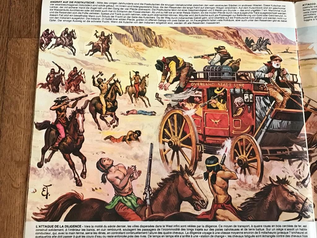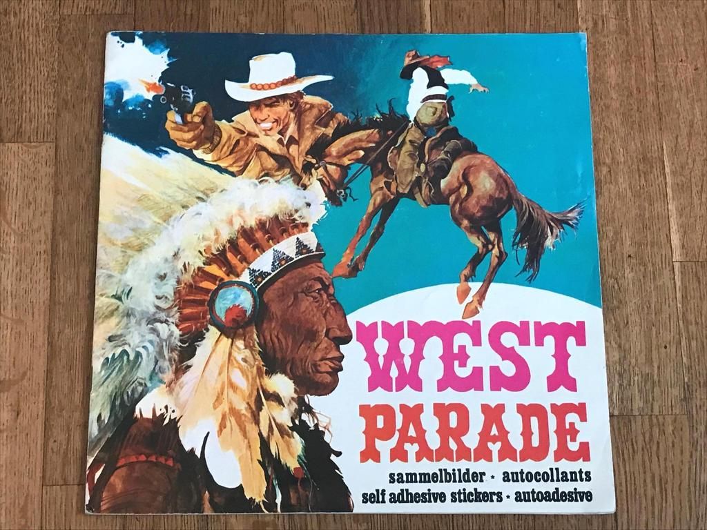 . Album di figurine Edis , edito nel 1975 ,originale , WEST PARADE , COMPLETO , di 282 figurine , autoadesive e fustellate . le figurine raffigurano il mondo western ed indiano dell'america settentrionale .Suddiviso in vignette ad argomentazione tematica : gli inseparabili compagni dell'indiano ; villaggio indiano ; la carovana ; citta del west ; il saloon M; la febbre dell'oro ; tribu indiane ( modoc , nasi forati , yuma , navajo , pima , shoshoni , sioux , cheyenne , comanche , apache , piedi neri , irochesi , mokawk , moycani , seminole , creek , uroni ... ) ; assalto alla carovana ; fort alamo ; attacco alla diligenza ; il ranch ; la guerra di secessione ; acconciature indiane le armi dei bianchi album in condizione generale ottima ,come da foto.