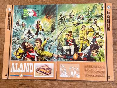 • Album di figurine , edizione Super Raf , del 1973 , originale , EROI E LEGGENDE AI TEMPI DEI PIONIERI , FARWEST , COMPLETO , 267 figurine ; di cui 189 classiche e 78 sagomate . Le immagini della raccolta , raffigurano gli eroi e le leggende al tempo dei pionieri dell'ovest degli Stati Uniti d' America e ripercorre la storia Usa agli inizi dell'800 , con l'esodo dei coloni verso ovest e gli inevitabili scontri con gli occupanti naturali di quei territori , gli indiani. l'album ripercorre perfettamente la sequenza con i seguenti argomenti : L' America dei pellerossa , il villaggio indiano , i primi coloni , rivoluzione ed indipendenza , i nuovi stati , Alamo , go west , i cercatori d'oro , la guerra di secessione , Gettysburg , i cow-boys , il ranch , mezzi di trasporto , le guerre indiane , Little Big Horn , legge ed ordine , attacco al treno , il rodeo . album in condizione generale ,come da foto.