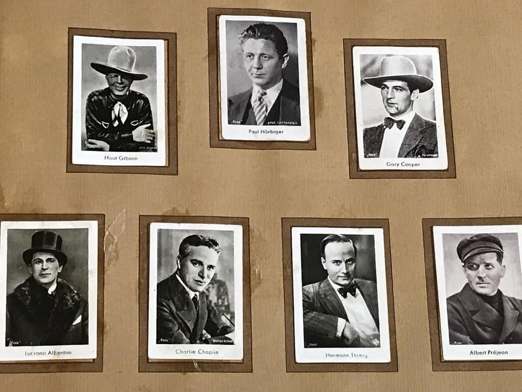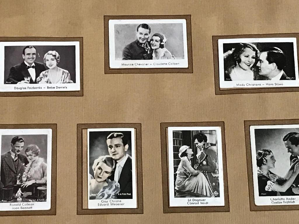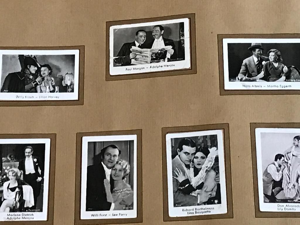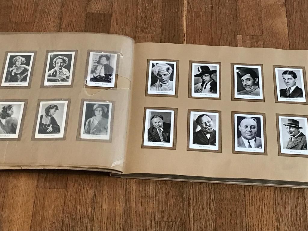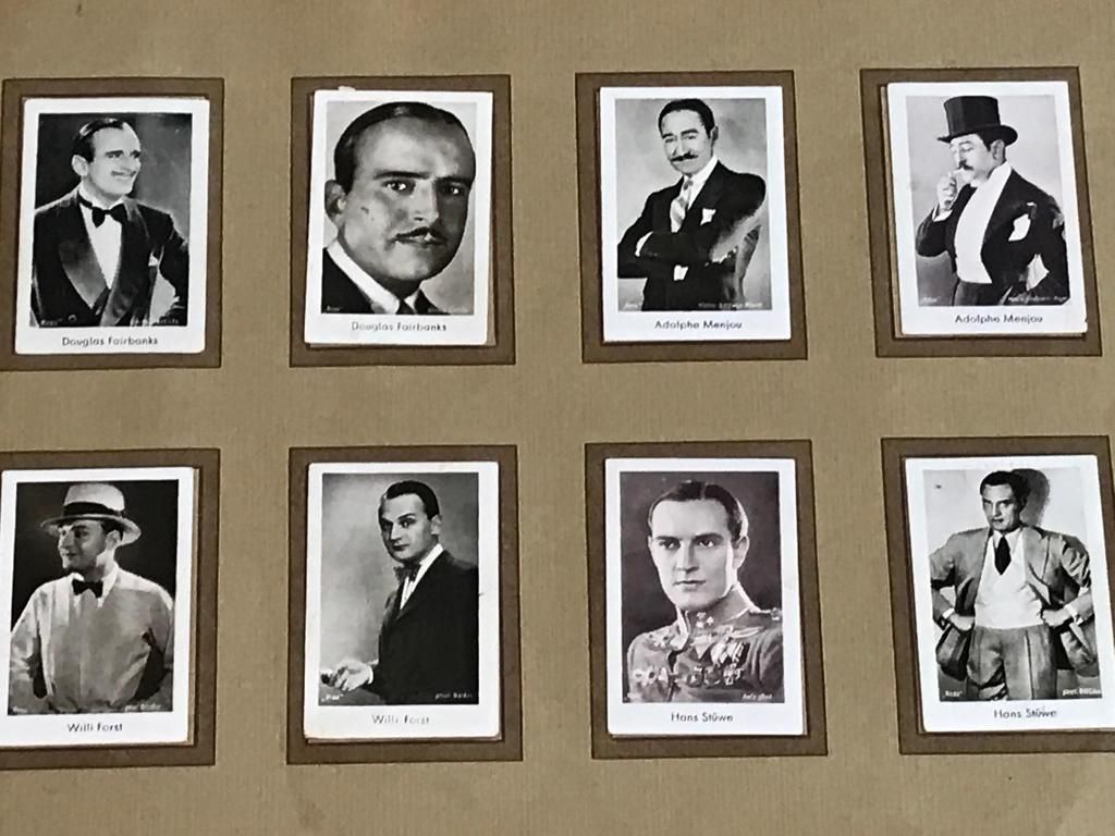 ملصقا الألبوم، التي نشرت في عام 1931، فيلم تلفزيوني الأصلي، نجوم السينما، كامل، 272 التماثيل التي تصور المشاهير السينما، والجهات الفاعلة الدولية والممثلات العالم الشهير من جميع الجنسيات ': تشارلي شابلن، باستر كيتون، رودولفو فالنتينو، غاري كوبر، غريتا غاربو، ليليان هارفي، مارلين ديتريش، رامون نافارو، رينات مولر، بريجيت H الدردار، أدولف منجو، ليل داغوفر، ليان هايد، آني أوندرا، غلوريا سوانسون، فيليكس بريسارت، موريس شوفالييه، ماك دونالد، جيني جوغو كاميلا القرن، مادو المسيحيين، نورما شيرر، جوان كراوفورد، دينا غرالا، لورا لا بلانتي، ماريون ديفيز، مارسيلا الألباني، دولوريس ديل ريو، تشارلز فاريل، بول مورغان، بيتر فوس، جون باريمور، تشارلز روجرز، إرنا مورينو، إلغا برينك ، هوت غيبسون، لوتشيانو البرتيني، ليليان إليس، بيتي بيرد، ليا بيري، ليا مارا، ديتا بارلو، لي باري، هاري فرانك، ليسي أرنو، أوسكار ماريون، رونالد كولمان، كين ماينارد، .... وغيرها الكثير. وبالإضافة إلى ذلك "ويضم الألبوم التماثيل التي تصور مشاهد من الأفلام الشهيرة: راسبوتين، شنغهاي اكسبرس، دريفوس، برلين ألكسندر، M .... والعديد من الأفلام عالية الشهيرة. الطبعة الخارجية. الألبوم في الحالة العامة ممتازة، وفقا للصورة