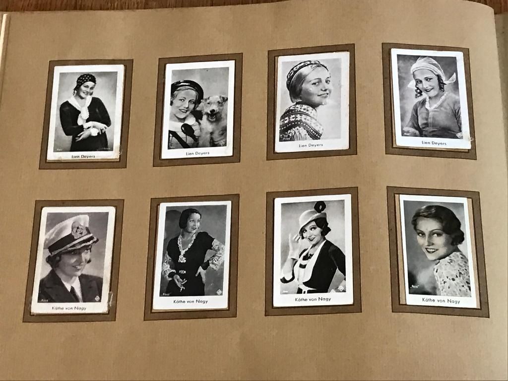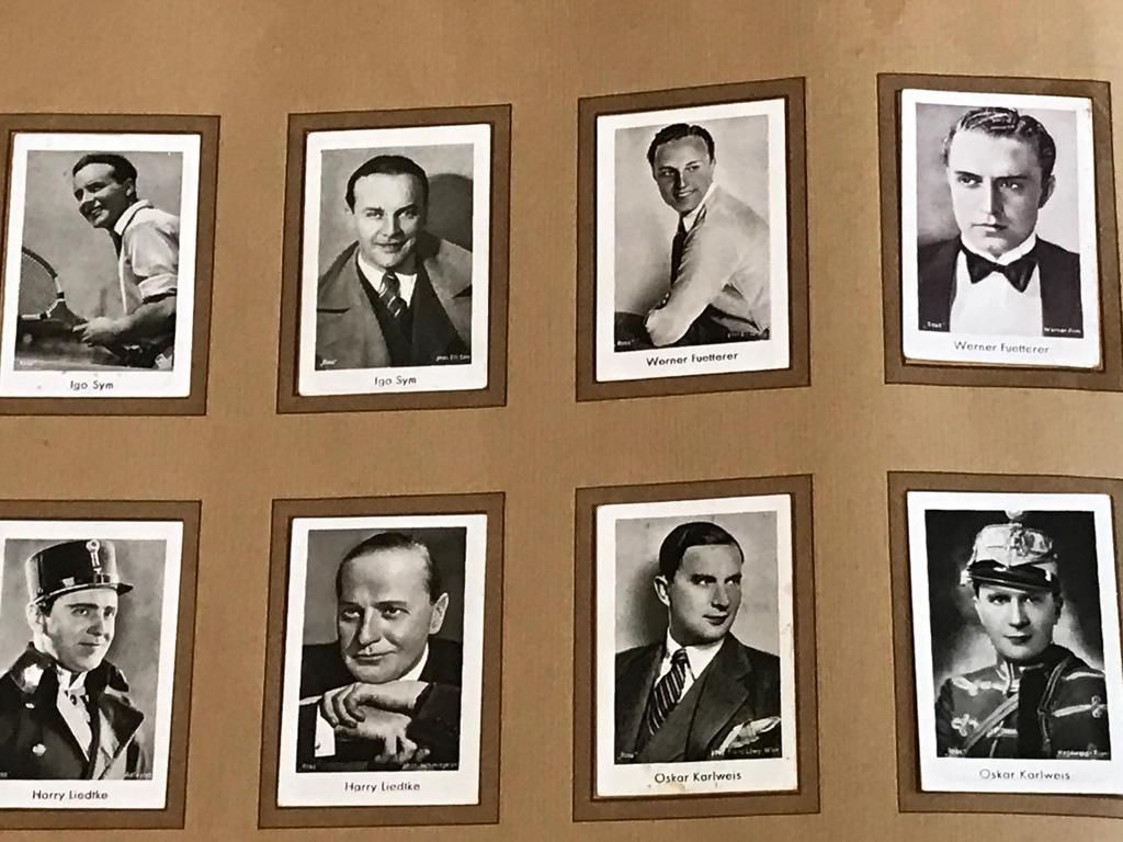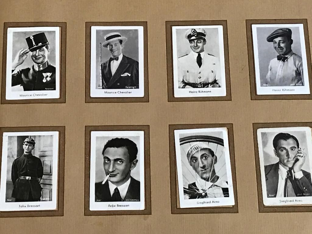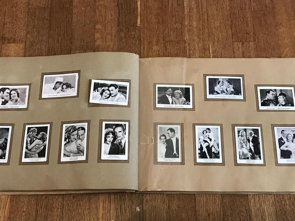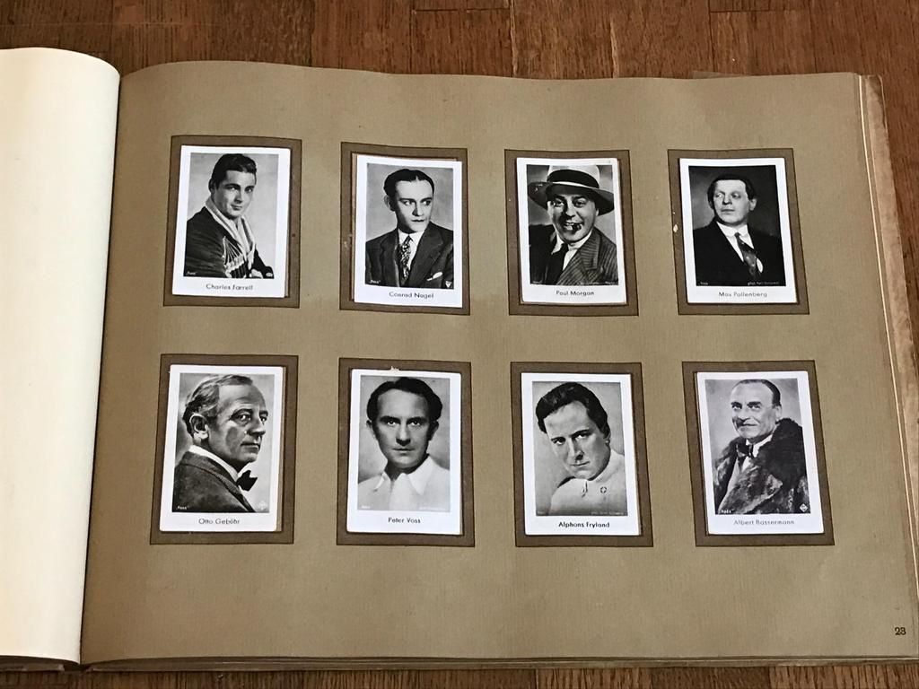ملصقا الألبوم، التي نشرت في عام 1931، فيلم تلفزيوني الأصلي، نجوم السينما، كامل، 272 التماثيل التي تصور المشاهير السينما، والجهات الفاعلة الدولية والممثلات العالم الشهير من جميع الجنسيات ': تشارلي شابلن، باستر كيتون، رودولفو فالنتينو، غاري كوبر، غريتا غاربو، ليليان هارفي، مارلين ديتريش، رامون نافارو، رينات مولر، بريجيت H الدردار، أدولف منجو، ليل داغوفر، ليان هايد، آني أوندرا، غلوريا سوانسون، فيليكس بريسارت، موريس شوفالييه، ماك دونالد، جيني جوغو كاميلا القرن، مادو المسيحيين، نورما شيرر، جوان كراوفورد، دينا غرالا، لورا لا بلانتي، ماريون ديفيز، مارسيلا الألباني، دولوريس ديل ريو، تشارلز فاريل، بول مورغان، بيتر فوس، جون باريمور، تشارلز روجرز، إرنا مورينو، إلغا برينك ، هوت غيبسون، لوتشيانو البرتيني، ليليان إليس، بيتي بيرد، ليا بيري، ليا مارا، ديتا بارلو، لي باري، هاري فرانك، ليسي أرنو، أوسكار ماريون، رونالد كولمان، كين ماينارد، .... وغيرها الكثير. وبالإضافة إلى ذلك "ويضم الألبوم التماثيل التي تصور مشاهد من الأفلام الشهيرة: راسبوتين، شنغهاي اكسبرس، دريفوس، برلين ألكسندر، M .... والعديد من الأفلام عالية الشهيرة. الطبعة الخارجية. الألبوم في الحالة العامة ممتازة، وفقا للصورة
