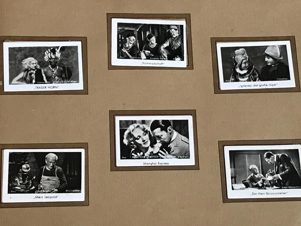 sticker album, published in 1931, original TV movie, MOVIE STARS, COMPLETE; 272 figurines that depict celebrities 'of international cinema, actors and world famous actresses of all nationalities': Charlie Chaplin, Buster Keaton, Rodolfo Valentino, Gary Cooper, Greta Garbo, Lilian Harvey, Marlene Dietrich, Ramon Navarro, Renate Muller , Brigitte H elm, Adolphe Menjou, Lil Dagover, Liane Haid, Anny Ondra, Gloria Swanson, Felix Bressart, Maurice Chevalier, Mc Donald, Jenny Jugo, Camilla Horn, Madu Christians, Norma Shearer, Joan Crowford, Dina Gralla, Laura La Plante , Marion Davies, Marcella Albani, Dolores Del Rio, Charles Farrel, Paul Morgan, Peter Voss, John Barrymore, Charles Rogers, Erna Moreno, Elga Brink, Hoot Gibson, Luciano Albertini, Lilian Ellis, Bety Bird, Lea Perry, Lya Mara, Dita Parlo, Lee Parry, Harry Frank, Lissi Arno, Oscar Marion, Ronald Colman, Ken Maynard, .... and many others. In addition 'the album features figurines depicting scenes from famous films: Rasputin, SHANGAI Express, Dreyfus, BERLIN ALEXANDERPLATZ, M .... and many high-famous films. overseas edition. album in excellent general condition, as per photo