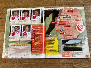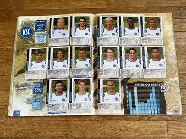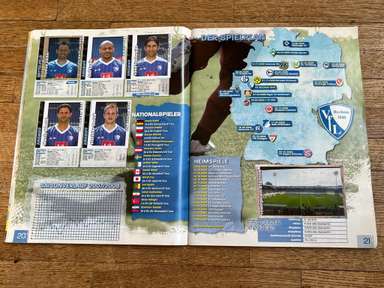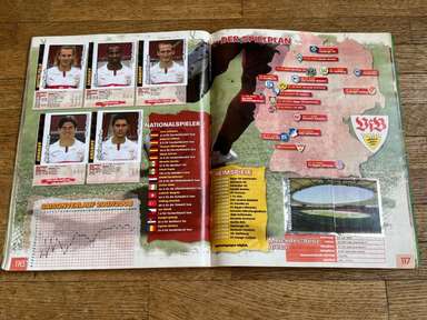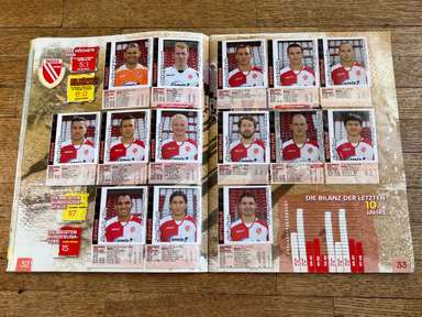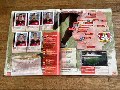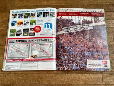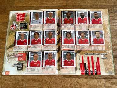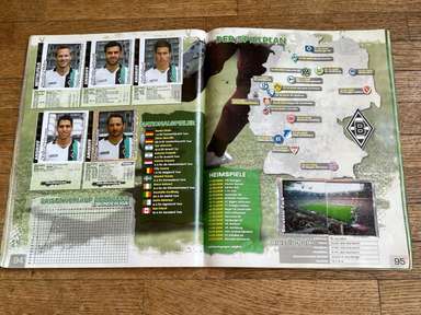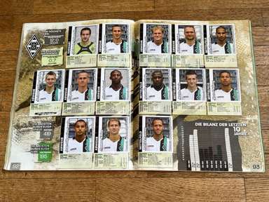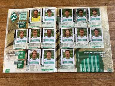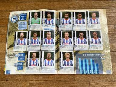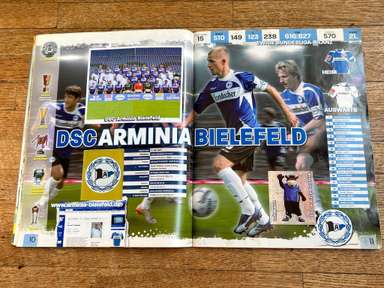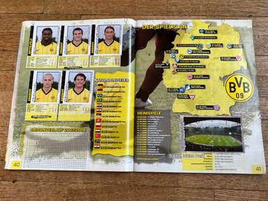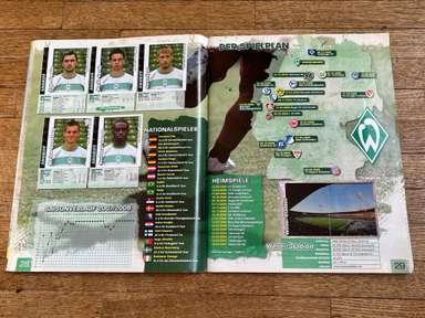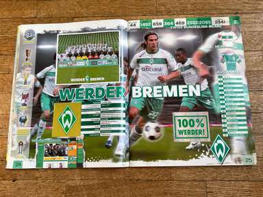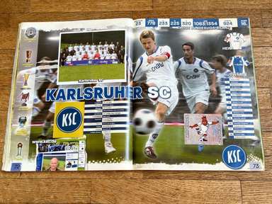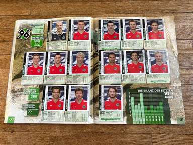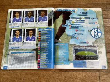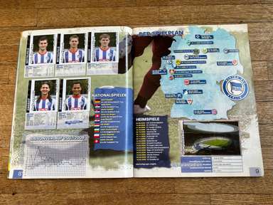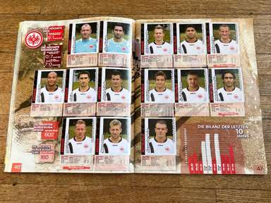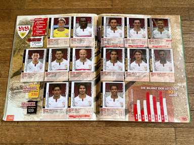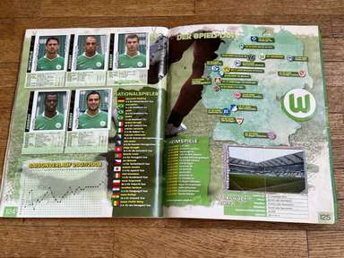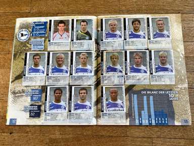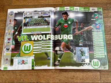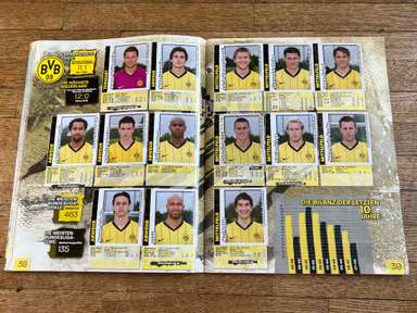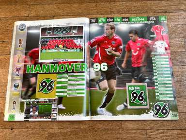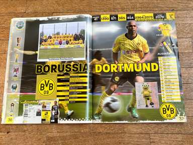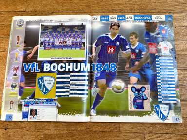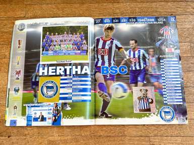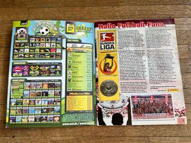 ألبوم الملصقات، طبعة بانيني. الدوري الألماني لكرة القدم 2008 2009 . كاملة، 496 ملصقًا ودرعًا. الصور الموجودة في المجموعة تصور جميع لاعبي كرة القدم من جميع الفرق التي شاركت في بطولة الدوري الألماني: هامبورغ، أرمينيا بيليفيلد، باير ليفركوزن، بايرن ميونيخ، بوخوم، بوروسيا دورتموند، بوروسيا مونشنغلادباخ، كولونيا، آينتراخت فرانكفورت، إنرجي كوتبوس ، هانوفر 96، هيرتا برلين، هوفنهايم، كارلسروه، شالكه 04، شتوتجارت، فولفسبورج، فيردر بريمن. مع العديد من اللاعبين، أبطال كرة القدم العالمية: لوكا توني، لوسيو، نيفين سوبوتيتش، شيشرون، ديمبا با، ينس ليمان، تورستن فرينجز، أندريا بارزالي، مارسيل شيفر، أندري فورونين، كلاوديو بيزارو، ماريو جوميز، كيفن كوراني، سيباستيان فريس، جيري. ستاجنر، ديميتار رانجيلوف، نيكوس ليمبيروبولوس، ميليفوي نوفاكوفيتش، روب فريند، ألكسندر فراي، ستانيسلاف شيستاك، باتريك هيلمز، أرتور فيشنياريك، ملادين بيتريتش، .. وغيرهم الكثير. انتهت نسخة 2008-2009 من الدوري الألماني بفوز فولفسبورج النهائي والتي حازت على لقبها الأول. بدأت البطولة في 15 أغسطس 2008 وانتهت في 23 مايو 2009. وكان جرافيتي هداف البطولة برصيد 28 هدفا في 25 مباراة. الألبوم بحالته العامة كما هو موضح في الصورة.