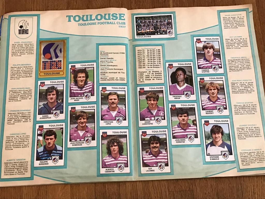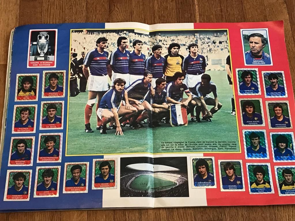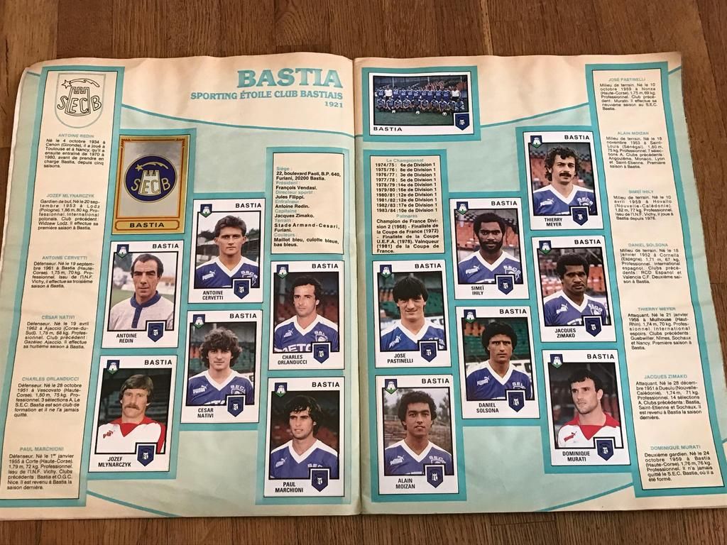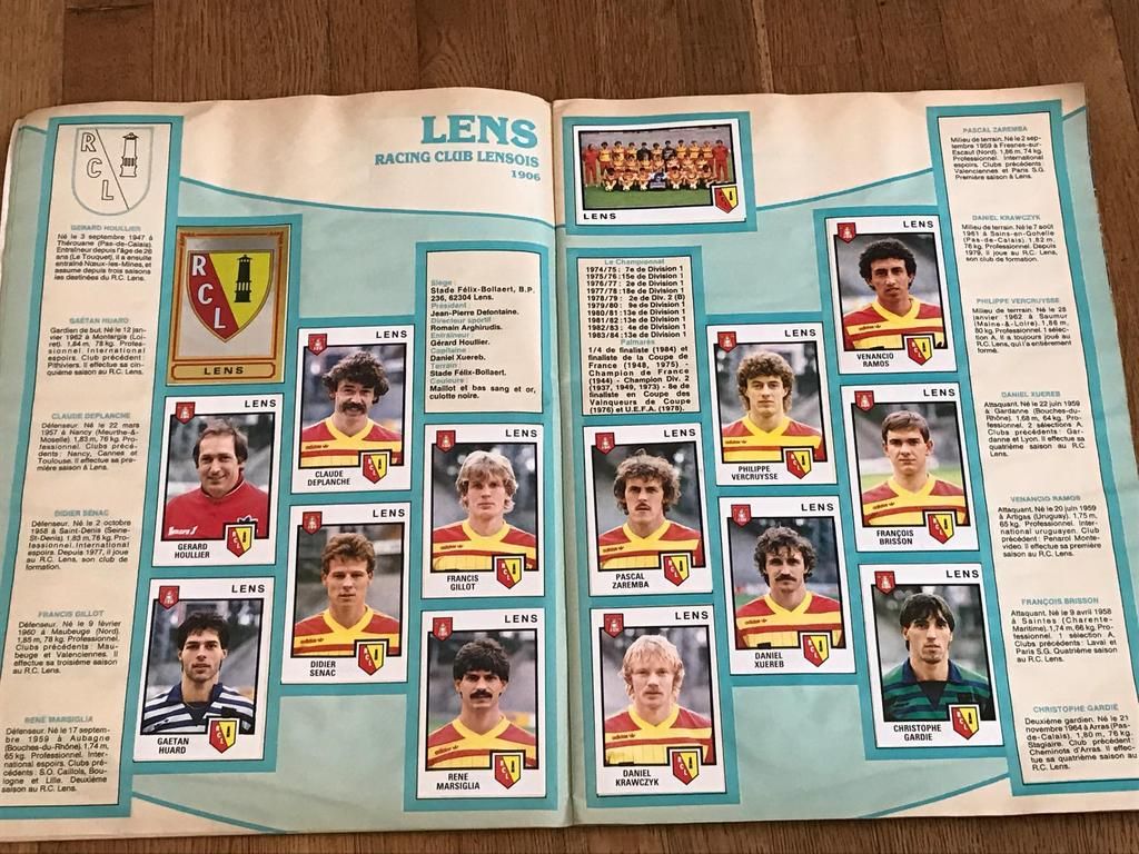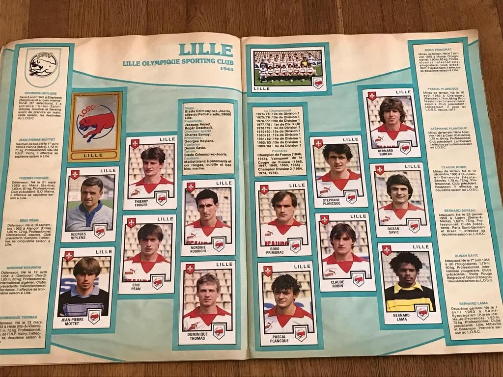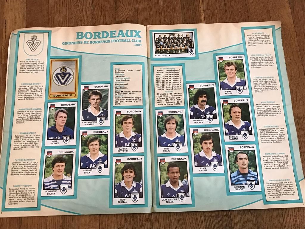 Album di figurine , Calciatori , edizione Panini, FOOTBALL 85 , COMPLETO , di 485 figurine ; con tutti i giocatori , di tutte le squadre , che parteciparono al campionato di Lega A francese ; tutti i giocatori e gli scudetti della 2 divisione ; numero 3 pagine centrali ,dedicate alla nazionale di Francia , campione di Euro 84 . squadre di prima divisione : Auxerre , Bastia , Bordeaux , Laval , Lens , Lilla , Metz , Monaco , Nancy , Nantes , O. Marsiglia , RC Parigi , PSG , Rouen , Sochaux , Brest , Strasburgo , Tolone , Tolos Tours . con tantissimi giocatori , campioni , nella storia del calcio mondiale :GUY ROUX , BOLI , FERRERI , FIARD , ZIMAKO , MEYER , SOLSONA , CERVETTI , ORLANDUCCI , MARCHIONI , JAQUET , MULLER , LACOMBE , GIRESSE , CHALANA , GIRARD , TIGANA , BATTISTON , SPECHT , DROPSY , TUSSEAU , WALLACE , HENRY , PARDO , MUSLIN , RICO , STECK , DE FALCO , SENE , ZANKO , DELAMONTAGNE , MITON , GODART , VERCRUYSSE , MARSIGLIA , GILLOT , SAVIC , PRIMORAC , ROBIN , PEAN , FROGER , LEVY , BRACCI , ZENIER , LA LING , FRANCINI , LOPEZ , BOCANDE , ZAPPIA , THYS , ETTORE , BRAVO , ANZIANI , STOJKOVIC , GENGHINI , AMOROS , SIMON , ETTOORI , PICOT , JACQUES , ARRIBART , CASINI , MARTINI , CARTIER , WENGER , BIBARD , BARONCHELLI ,AMISSE , TOURE , BOSSIS , FERNANDEZ , NIEDERBACHER , ROCHETAU , SUSIC , LEMOULT , BATHENAY , BARATELLI , OEKLAND , BEN MABROUCK , DIDAUX , BELTRAMINI , REDON , ALBERTO , MALBEUX , DEOSSI , THOMAS , PAILLE , LUCAS , KNAPP , SOLE , PECOUT , SOUTO , PIASECKI , VOGEL , CASONI , DIB , EMON , TLEMCANI , COURBIS , DOMERGUE , ROUSSEY , ABEGA , STOPYRA , MARX , DE FONSECA , VARADY , FURLAN , LESTAGE , .... e tanti altri . L'edizione 1984-85 della Division 1 fu il quarantasettesimo campionato di calcio francese, che vide per la seconda volta consecutiva la vittoria finale del Bordeaux. . Capocannoniere del torneo fu Vahid Halilhodžić del Nantes, con 28 reti. .edizione estera . Album in condizione generale ,come da foto.