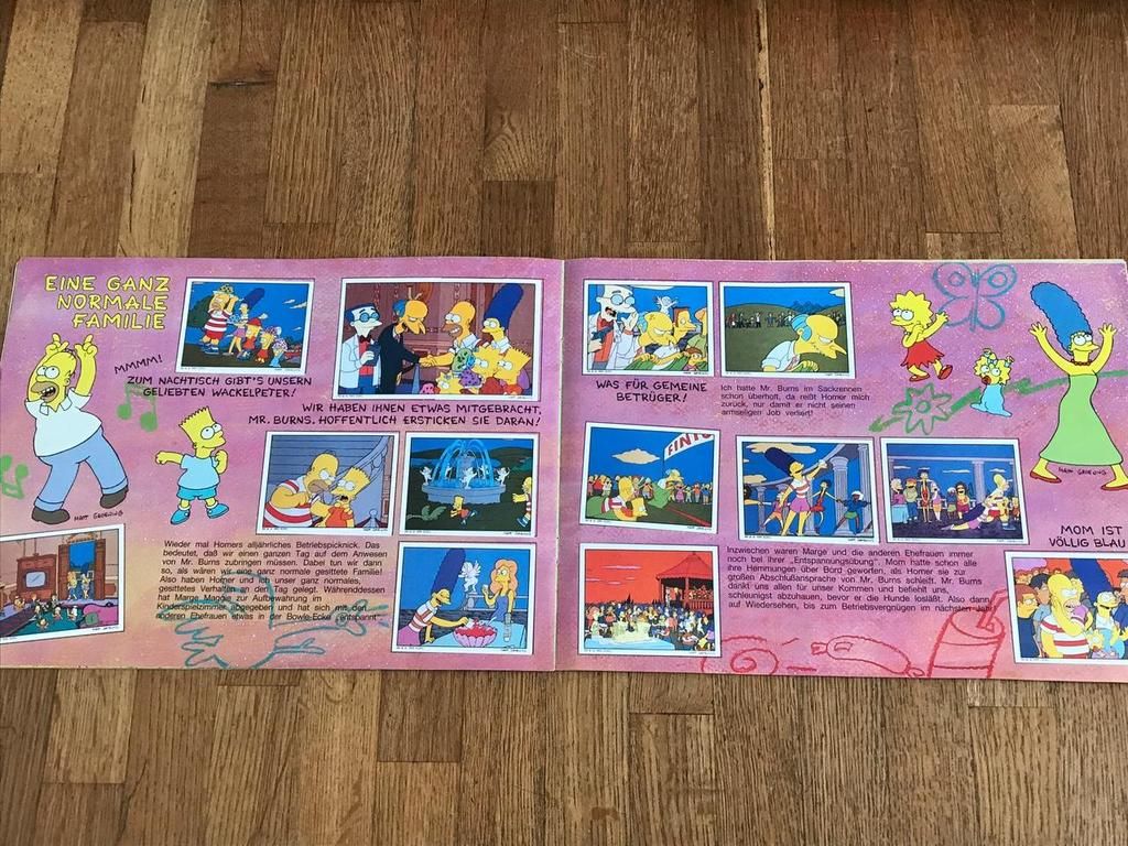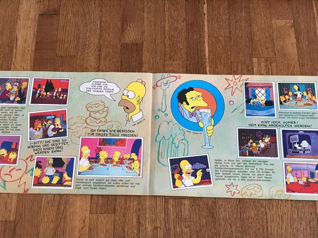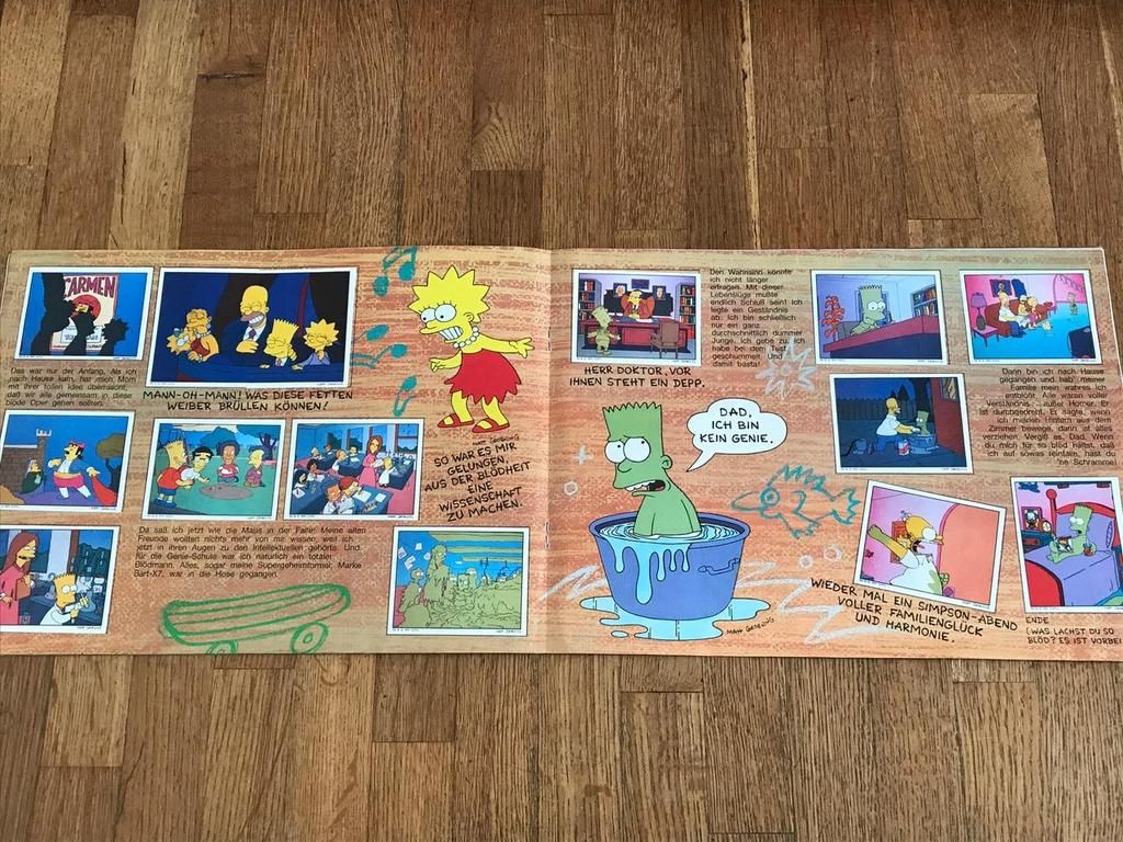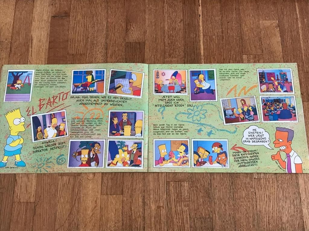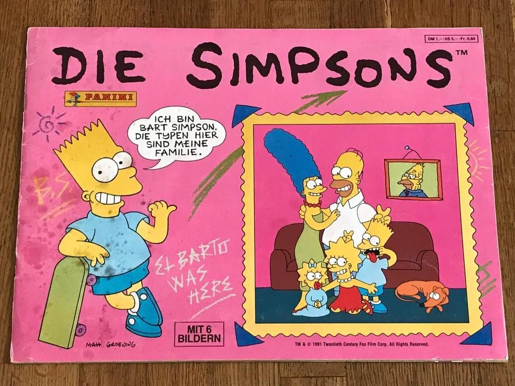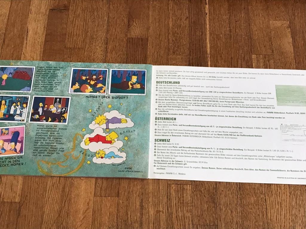 Álbum de figuritas, edición Panini, publicado en 1991, y los dibujos animados de televisión, Los Simpson, Traje, 204 figurines. Los Simpson (The Simpsons) es una serie animada popular americana creada por el dibujante Matt Groening en 1987 para la Fox Broadcasting Company. La serie es una sátira del estilo de vida estadounidense, personificada por la familia Simpson, protagonista de la obra, cuyos miembros son Homer, Marge y sus tres hijos Bart, Lisa y Maggie. Situado en la ciudad ficticia de Springfield, la caricatura es de humor en muchos aspectos de la condición humana, incluyendo la cultura, la sociedad y la propia televisión. edición internacional. álbum en el estado general, como foo.