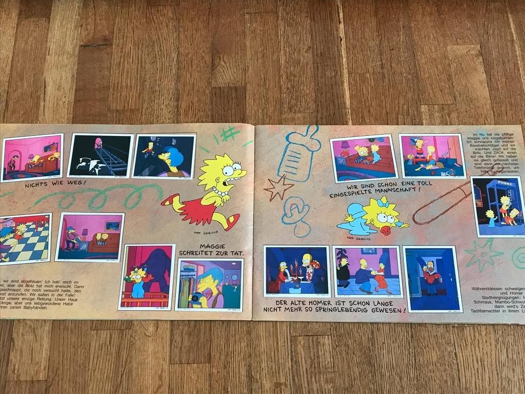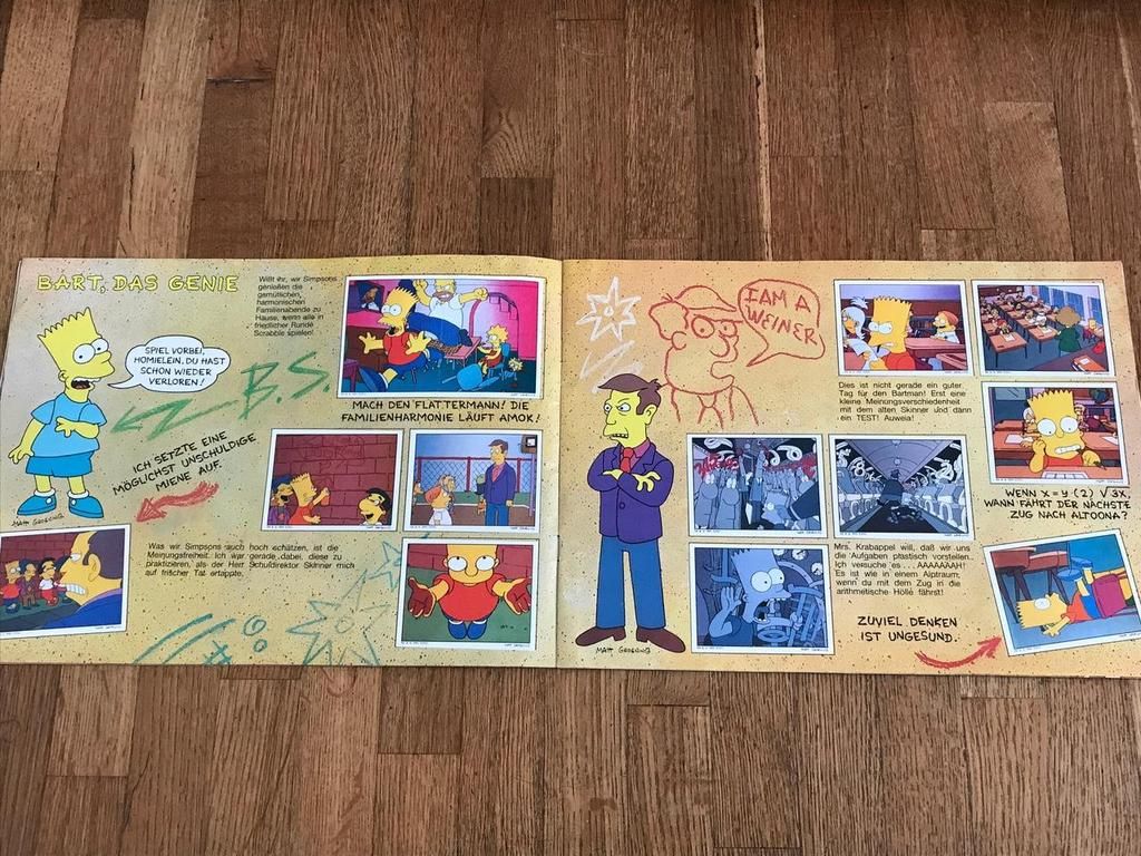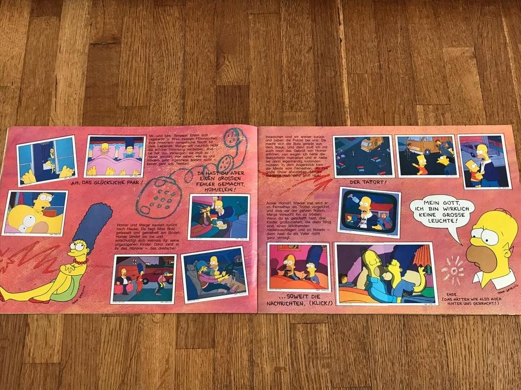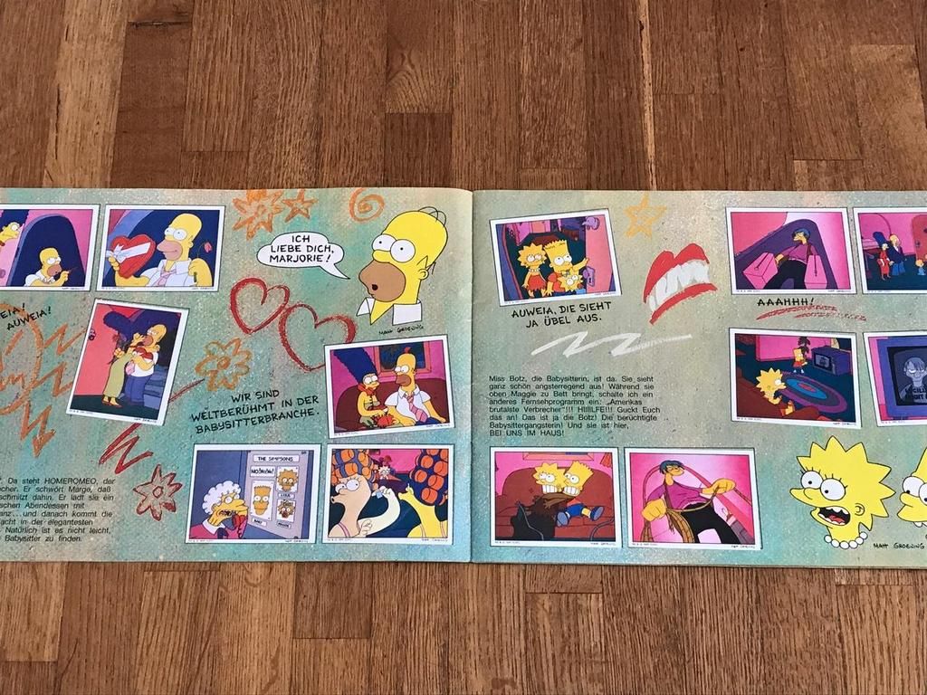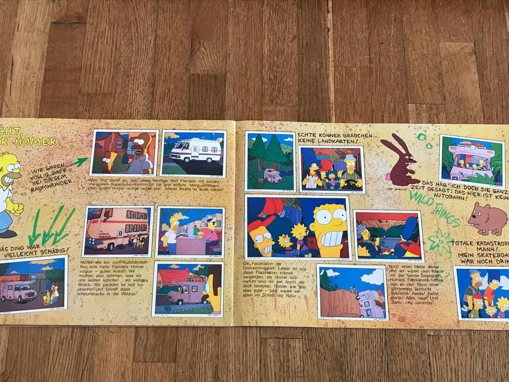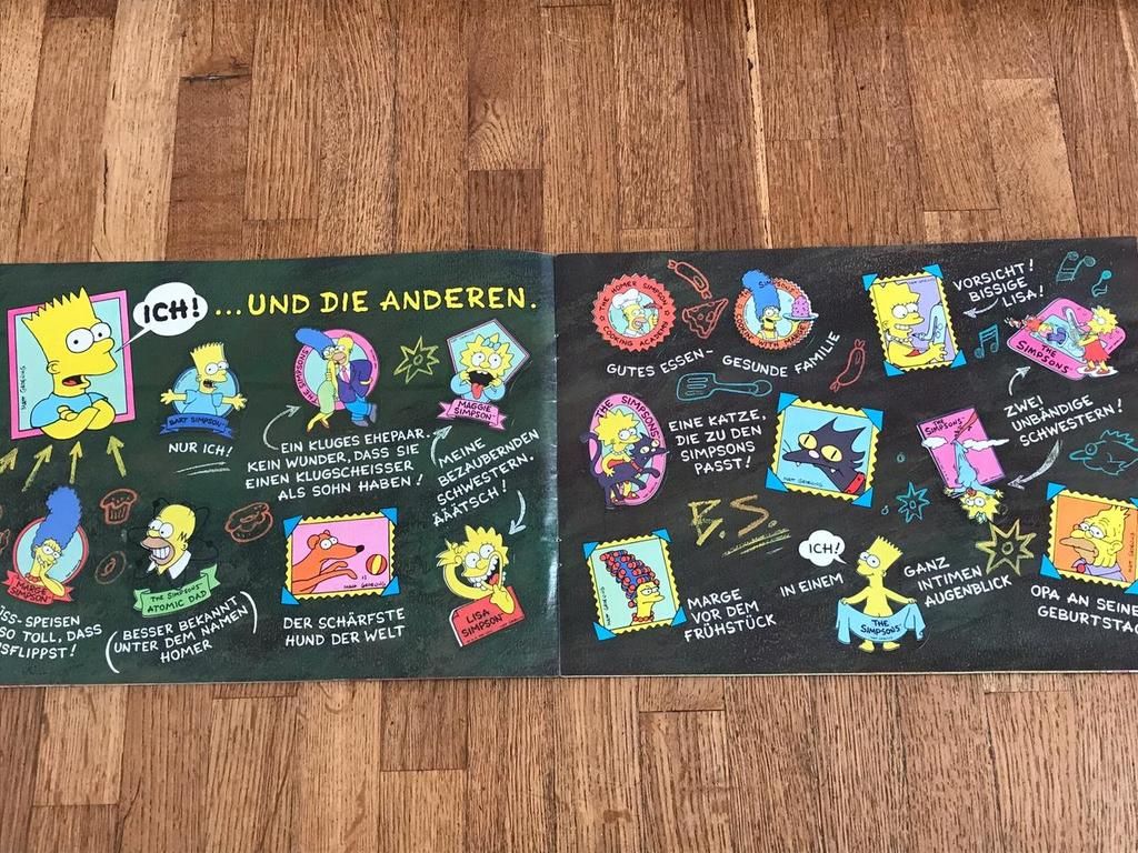 Álbum de figuritas, edición Panini, publicado en 1991, y los dibujos animados de televisión, Los Simpson, Traje, 204 figurines. Los Simpson (The Simpsons) es una serie animada popular americana creada por el dibujante Matt Groening en 1987 para la Fox Broadcasting Company. La serie es una sátira del estilo de vida estadounidense, personificada por la familia Simpson, protagonista de la obra, cuyos miembros son Homer, Marge y sus tres hijos Bart, Lisa y Maggie. Situado en la ciudad ficticia de Springfield, la caricatura es de humor en muchos aspectos de la condición humana, incluyendo la cultura, la sociedad y la propia televisión. edición internacional. álbum en el estado general, como foo.