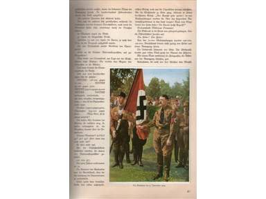 ENG Sticker album, original from 1932, 3 Reich, GERMANY, AWAKENED, COMPLETE, 225 cards. the images in the collection illustrate the dawn of Nazi Germany and the Third Reich. propaganda book. When Germany calls for a moratorium on the payment of war debts, France and Belgium occupy the mining basin of the Ruhr (1923), the most economically developed German region. There are attempts at insurrection both by the far left in Hamburg and by the far right in Munich, where Hitler leads a putsch (coup d'état) on November 23, 1923, but the government manages to thwart both and initiate a monetary stabilization and reconciliation policy with France. The agreement with the winners is finally found thanks to the mediation of the US financier Charles G. Dawes, who presents a financial plan, Plan Dawes, which, accepted by both the French and the Germans, should allow Germany to recover economically. The subsequent Locarno Pact (1925) favors Franco-German detente, recognizing the maintenance of the borders and the demilitarization of the Rhineland. Germany, renouncing any attempt to recover, joins the League of Nations in 1926. After the Munich insurrection, Hitler is arrested and sentenced to five years in prison. However, he pays only one, during which he writes the book Mein Kampf (My battle), in which he exposes his nationalist and racist beliefs. He believes in the existence of a superior and conquering race, the Aryan, which he identifies with the Germans. Jews and Communists pollute the purity of the Aryans and therefore must be annihilated. The next step would have been the recovery of the lost territories (colonies) and the expansion towards the East to the detriment of the Slavic peoples, until the complete realization of Pan-Germanism. Hitler had already founded the National Socialist Party of German Workers (1920), or the Nazi Party, which began to gain support only in the 1930s, following the great crisis. It is then that the majority of Germans lose all faith in the republic and democratic parties and listen to the propaganda of Nazism, which promises a return of Germany to its former greatness. In the elections held between 1930 and 1932, the Nazi Party becomes the first German party and Marshal Hindenburg, President of the Republic, summons Hitler to form the government (January 30, 1933). The transformation of the German republic into a dictatorship takes place within a few months. The pretext is the burning of the Reichstag (the German parliament), for which a Dutch Communist is accused and arrested. Hitler aims at the elimination of the parliament and forces the newly elected Reichstag to pass a law that gives full powers (including that to modify the Constitution) to the government. The government, shortly after, passed a law proclaiming the National Socialist Party as the only German party, so much so that, in the following elections, it obtained 92% of the votes. There are only two obstacles: the first is constituted by the extreme wing of the party, represented by the SA (assault units or brown shirts) of Ernst Rohm who want a second revolution; the second is constituted by the old conservative right personified by Hindenburg and the army.Hitler, meanwhile, proceeded to create his own militia, the SS (defense departments), which in the night between 30 June and 1 July 1934 - the so-called "night of the long knives" - they assassinate all the general staff of the SA including Rohm, whose head was also requested by the army which, on Hindenburg's death, appoints Hitler as head of state. Thus was born the Third Reich, that is the third empire after the Holy Roman Empire and the Germany of Bismarck, at the head of which there is the fuhrer (duce), supreme source of law and guide of the people. foreign edition. album in general condition, as shown in the photos