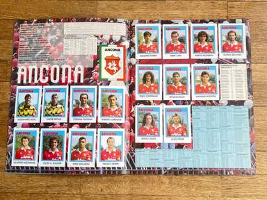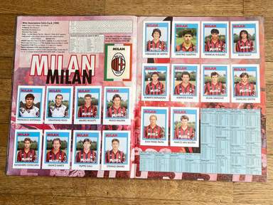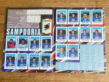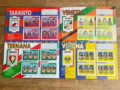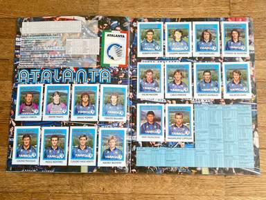 GRE Άλμπουμ με αυτοκόλλητα, Έκδοση Flash, ποδόσφαιρο 93, ΟΛΟΚΛΗΡΩΜΕΝΟ, 412 αυτοκόλλητα και σήματα. Οι εικόνες της συλλογής απεικονίζουν όλους τους παίκτες, από όλες τις ομάδες, που έλαβαν μέρος στο ιταλικό πρωτάθλημα ποδοσφαίρου, Serie A και B, 1992 93. τα σήματα της Serie C1· . Τα lineups εμφανίζονται στο άλμπουμ. Serie A: Ανκόνα, Αταλάντα, Μπρέσια, Κάλιαρι, Φιορεντίνα, Φότζια, Τζένοα, Ίντερ, Γιουβέντους, Λάτσιο, Μίλαν, Νάπολη, Πάρμα, Πεσκάρα, Ρώμη, Σαμπντόρια, Τορίνο, Ουντινέζε. Serie B: Ascoli, Bari, Bologna, Cesena, Cosenza, Cremonese, Fidelis Andria, Lecce, Lucchese, Modena, Monza, Padoa, Piacenza, Pisa, Reggiana, Spal, Taranto, Ternana, Venice, Verona. Με παίκτες που έχουν γράψει την ιστορία του παγκόσμιου ποδοσφαίρου: Fabrizio Lorieri , Massimo Piscedda , Filippo Maniero , Oliver Bierhoff , Pedro Troglio , Bruno Giordano , Astutillo Malgioglio , Claudio Caniggia , Fabrizio Ferron , Glenn Peter Strömbergio , David Oramber Strömbergi Robert Jarni Angelo Colombo Zvonimir Boban Massimo Brambati Enzo Francescoli Daniel Fonseca Gianfranco Matteoli Massimiliano Cappioli Pierpaolo Bisoli Matteo Villa Gianluca Festa Gustavo Abel Dezotti Dario Marcolin Riccardo Maspero Mauro Bonomi Giuseppeto Favalli, Stefano Pioli , Gianmatteo Mareggini , Francesco Mancini , Giuseppe Signori , Igor' Kolyvanov , Francesco Baiano , Igor' Šalimov , Roberto Rambaudi , Dan Petrescu , Onofrio Barone , Pasquale Padalino, Salvatore Mašárecýraco, Tomravileh Τζενάρο Ruotolo, Stefano Eranio, Gianluca Signorini, Christian Panucci, Jürgen Klinsmann, Marco Delvecchio, Lothar Matthäus, Nicola Berti, Dino Baggio, Andreas Brehme, Giuseppe Bergomi, Walter Zenga, Salvatore Schillaci, Paolo Di Canio, Antonio Bagghio, Pierluii Stefan Reuter Jürgen Kohler Júlio César Angelo Peruzzi Stefano Tacconi Massimo Carrera Luigi De Agostini Karl-Heinz Riedle Rubén Sosa Thomas Doll Angelo Gregucci Fernando Orsi Cristiano Bergodi Marco van Basten Daniele Massaro Φρανκ Γκουλιτόνι, Ρουντίν Ντονιέλ Μασάρο Φρανκ Γκουλιτόνι, Ρουντίν Μασάρο Φρανκ Γκουλιτόνι, Ρούντ Tassotti , Franco Baresi , Carlo Ancelotti , Demetrio Albertini , Sebastiano Rossi , Francesco Antonioli , Alessandro Costacurta , Filippo Galli , Marco Simone , Gianfranco Zola , Andrea Silenzi , Michele Padovano , Carecamo Φερλεντόρι Melli, Cláudio Taffarel, Tomas Brolin, Lorenzo Minotti, Antonio Benaereo , Luigi Apolloni , Marco Ballotta , Marco Osio , Rudi Völler , Ruggero Rizzitelli , Andrea Carnevale , Giovanni Cervone , Aldair , Sebastiano Nela , Giuseppe Giannini , Thomas Hässlerzi , Robertotillio , Roberto Srečko Katanec , Toninho Cerezo , Gianluca Pagliuca , Pietro Vierchowod , Fausto Pari , Ivano Bonetti , Giuseppe Dossena , Rafael Martín Vázquez , Christian Vieri , Vincenzo Scifo , Μοχάμεντ Ποντουκ Γκαργκό, Ρομπέρτου, Ρομπέρτου, Ρομπέρτου Γκαργκό, Μοχάμεντ Λουκουάλιο Gregori , Dragan Stojković , Andrea Icardi,...και πολλοί άλλοι. Η Serie A 1992-1993 ήταν η 91η διοργάνωση της κορυφαίας κατηγορίας του ιταλικού πρωταθλήματος ποδοσφαίρου, που παίχτηκε μεταξύ 6 Σεπτεμβρίου 1992 και 6 Ιουνίου 1993 και τελείωσε με τη Μίλαν να κατακτά τον δέκατο τρίτο τίτλο της, τον δεύτερο στη σειρά. Πρώτος σκόρερ της διοργάνωσης αναδείχθηκε ο Τζουζέπε Σινιόρι (Λάτσιο) με 26 γκολ.Το άλμπουμ είναι φωτογραφημένο ολόκληρο, σελίδα σε σελίδα. άλμπουμ σε γενική κατάσταση όπως φαίνεται στις φωτογραφίες.