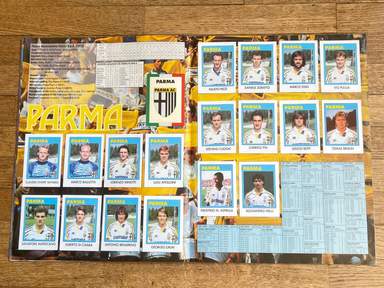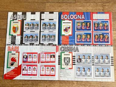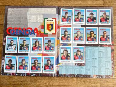 ENG Sticker album, Flash edition, football 93, COMPLETE, 412 stickers and badges. The images in the collection depict all the players, from all the teams, who took part in the Italian football championship, Serie A and B, 1992 93; the Serie C1 badges; . Lineups featured on the album. Serie A: Ancona, Atalanta, Brescia, Cagliari, Fiorentina, Foggia, Genoa, Inter, Juventus, Lazio, Milan, Naples, Parma, Pescara, Rome, Sampdoria, Turin, Udinese. Serie B: Ascoli, Bari, Bologna, Cesena, Cosenza, Cremonese, Fidelis Andria, Lecce, Lucchese, Modena, Monza, Padua, Piacenza, Pisa, Reggiana, Spal, Taranto, Ternana, Venice, Verona. With players who have made the history of world football: Fabrizio Lorieri , Massimo Piscedda , Filippo Maniero , Oliver Bierhoff , Pedro Troglio , Bruno Giordano , Astutillo Malgioglio , Claudio Caniggia , Fabrizio Ferron , Glenn Peter Strömberg , Pierluigi Orlandini , João Paulo , David Platt Robert Jarni Angelo Colombo Zvonimir Boban Massimo Brambati Enzo Francescoli Daniel Fonseca Gianfranco Matteoli Massimiliano Cappioli Pierpaolo Bisoli Matteo Villa Gianluca Festa Gustavo Abel Dezotti Dario Marcolin Riccardo Maspero Mauro Bonomi Giuseppe Favalli Michelangelo Rampulla , Gabriel Batistuta , Marco Branca , Massimo Orlando , Mazinho , Carlos Dunga , Stefano Pioli , Gianmatteo Mareggini , Francesco Mancini , Giuseppe Signori , Igor' Kolyvanov , Francesco Baiano , Igor' Šalimov , Roberto Rambaudi , Dan Petrescu , Onofrio Barone , Pasquale Padalino, Salvatore Fresi, Salvatore Matrecano, Tomáš Skuhravý, Marco Pacione, Carlos Aguilera, Gennaro Ruotolo, Stefano Eranio, Gianluca Signorini, Christian Panucci, Jürgen Klinsmann, Marco Delvecchio, Lothar Matthäus, Nicola Berti, Dino Baggio, Andreas Brehme, Giuseppe Bergomi, Walter Zenga, Salvatore Schillaci, Paolo Di Canio, Pierluigi Casiraghi, Roberto Baggio, Antonio Conte Stefan Reuter Jürgen Kohler Júlio César Angelo Peruzzi Stefano Tacconi Massimo Carrera Luigi De Agostini Karl-Heinz Riedle Rubén Sosa Thomas Doll Angelo Gregucci Fernando Orsi Cristiano Bergodi Marco van Basten Daniele Massaro Frank Rijkaard , Ruud Gullit , Roberto Donadoni , Alberigo Evani , Paolo Maldini , Mauro Tassotti , Franco Baresi , Carlo Ancelotti , Demetrio Albertini , Sebastiano Rossi , Francesco Antonioli , Alessandro Costacurta , Filippo Galli , Marco Simone , Gianfranco Zola , Andrea Silenzi , Michele Padovano , Careca , Alemão , Fernando De Napoli , Laurent Blanc , Massimo Crippa , Alessandro Melli , Cláudio Taffarel , Tomas Brolin , Lorenzo Minotti , Antonio Benaereo , Luigi Apolloni , Marco Ballotta , Marco Osio , Rudi Völler , Ruggero Rizzitelli , Andrea Carnevale , Giovanni Cervone , Aldair , Sebastiano Nela , Giuseppe Giannini , Thomas Hässler , Roberto Muzzi , Amedeo Carboni , Gianluca Vialli , Roberto Mancini , Attilio Lombardo , Srečko Katanec , Toninho Cerezo , Gianluca Pagliuca , Pietro Vierchowod , Fausto Pari , Ivano Bonetti , Giuseppe Dossena , Rafael Martín Vázquez , Christian Vieri , Vincenzo Scifo , Mohammed Gargo , Roberto Policano , Luca Marchegiani , Pasquale Bruno , Roberto Cravero , Florin Răducioiu , Attilio Gregori , Dragan Stojković , Andrea Icardi,..and many others. The 1992-1993 Serie A was the 91st edition of the top flight of the Italian football championship, played between 6 September 1992 and 6 June 1993 and ended with Milan winning its thirteenth title, the second in a row. Top scorer of the tournament was Giuseppe Signori (Lazio) with 26 goals. The album is photographed in its entirety, page by page. album in general condition as shown in photos.
