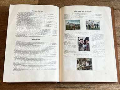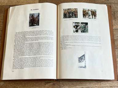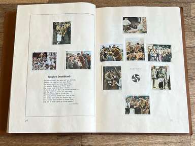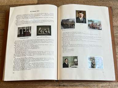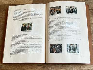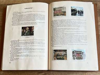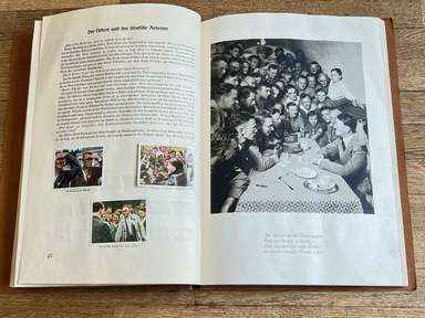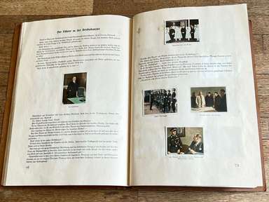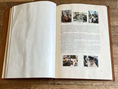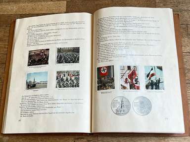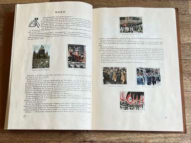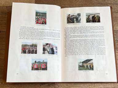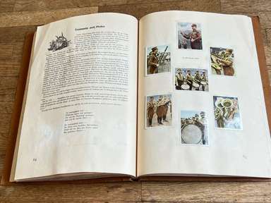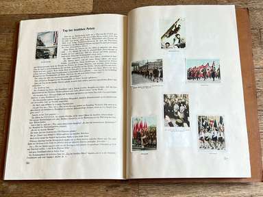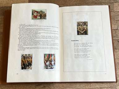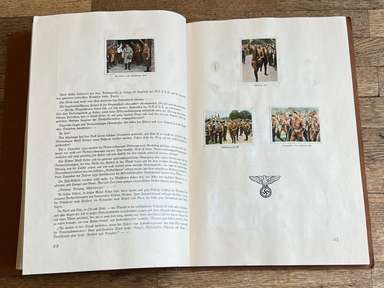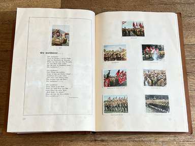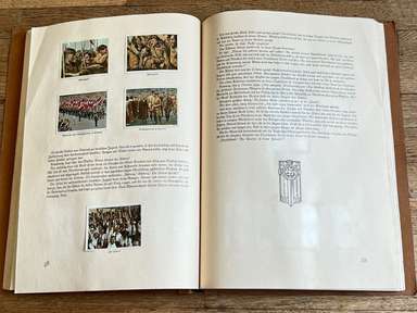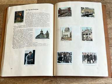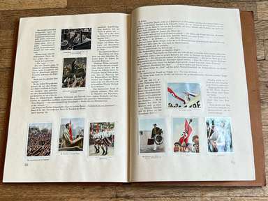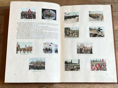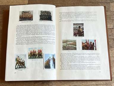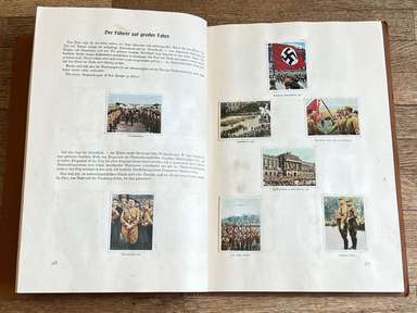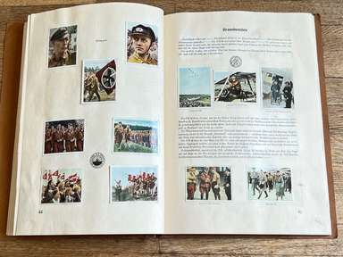 ENG Album stickers, original from 1935, third REICH, COMPLETE, 272 cards, the images of the collection, illustrate the dawn of Nazi Germany and the third reich. propaganda book. When Germany requests a moratorium on the payment of war debts, France and Belgium occupy the Ruhr mining basin (1923), the most economically developed German region. There are attempts at insurrection by both the far left in Hamburg and the far right in Munich, where Hitler leads a putsch on November 23, 1923, but the government manages to foil both of them and initiate a monetary stabilization and reconciliation policy with France. The agreement with the winners is finally found thanks to the mediation of the American financier Charles G. Dawes, who presents a financial plan, Piano Dawes, which, accepted by both the French and the Germans, should allow Germany to recover economically. The subsequent Locarno Pact (1925) promoted Franco-German relaxation, recognizing the maintenance of borders and the demilitarization of the Rhineland. Germany, renouncing any attempted recovery, joined the League of Nations in 1926. After the Munich uprising, Hitler was arrested and sentenced to five years in prison. However, he suffers only one, during which he writes the book Mein Kampf (My battle), in which he exposes his nationalist and racist creed. He believes in the existence of a superior and conquering race, the Aryan one, which he identifies in the Germans. Jews and communists pollute the purity of the Aryans and therefore must be annihilated. The next step would have been the recovery of the lost territories (colonies) and the expansion towards the east to the detriment of the Slavic peoples, until the complete realization of Pangermanism. Hitler had already founded the National Socialist Workers Party of Germany (1920), or the Nazi Party, which began to gain consensus only in the 1930s, following the great crisis. It is then that the majority of Germans lose all faith in the republic and democratic parties and listen to the propaganda of Nazism, which promises a return of Germany to past greatness. In the elections held between 1930 and 1932, the Nazi Party became the first German party and Marshal Hindenburg, President of the Republic, summoned Hitler to form the government (30 January 1933). The transformation of the German republic into dictatorship takes place within a few months. The pretext is the burning of the Reichstag (the German parliament), for which a Dutch communist is accused and arrested. Hitler aims to eliminate parliament and compels the newly elected Reichstag to pass a law that confers full powers (including that of amending the Constitution) on the government. The government shortly thereafter passed a law proclaiming the National Socialist Party as the only German party, so much so that in subsequent elections it obtained 92% of the vote. Only two obstacles remain: the first is the extreme wing of the party, represented by Ernst Rohm's SA (assault departments or brown shirts) who want a second revolution; the second is made up of the old conservative right-wing personified by Hindenburg and the army. Meanwhile, Hitler has created his own militia, the SS (defense departments), which on the night between June 30 and July 1, 1934 - the so-called "night of long knives" - they assassinate all the general staff of the SA including Rohm, whose head was also requested by the army which, at the death of Hindenburg, appoints Hitler as head of state. Thus was born the Third Reich, that is, the third empire after the Holy Roman Empire and Bismarck's Germany, at the head of which is the fùhrer (duce), supreme source of law and guide of the people. foreign edition. album in general condition as shown in photos