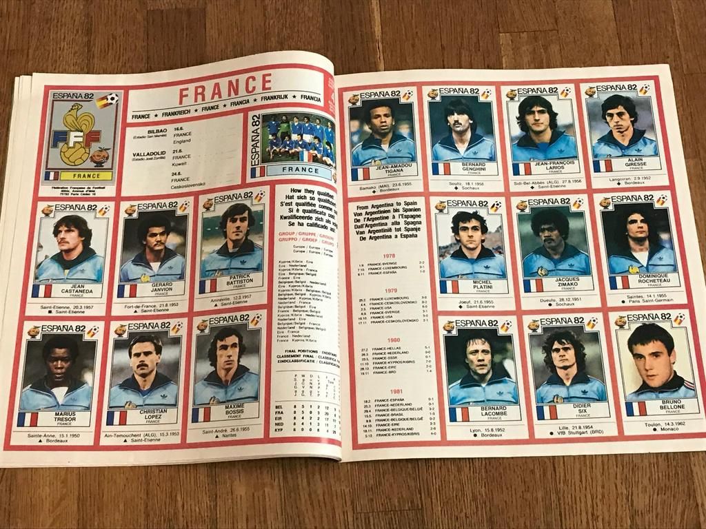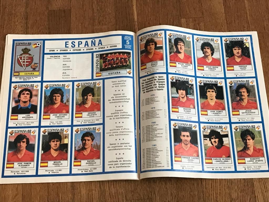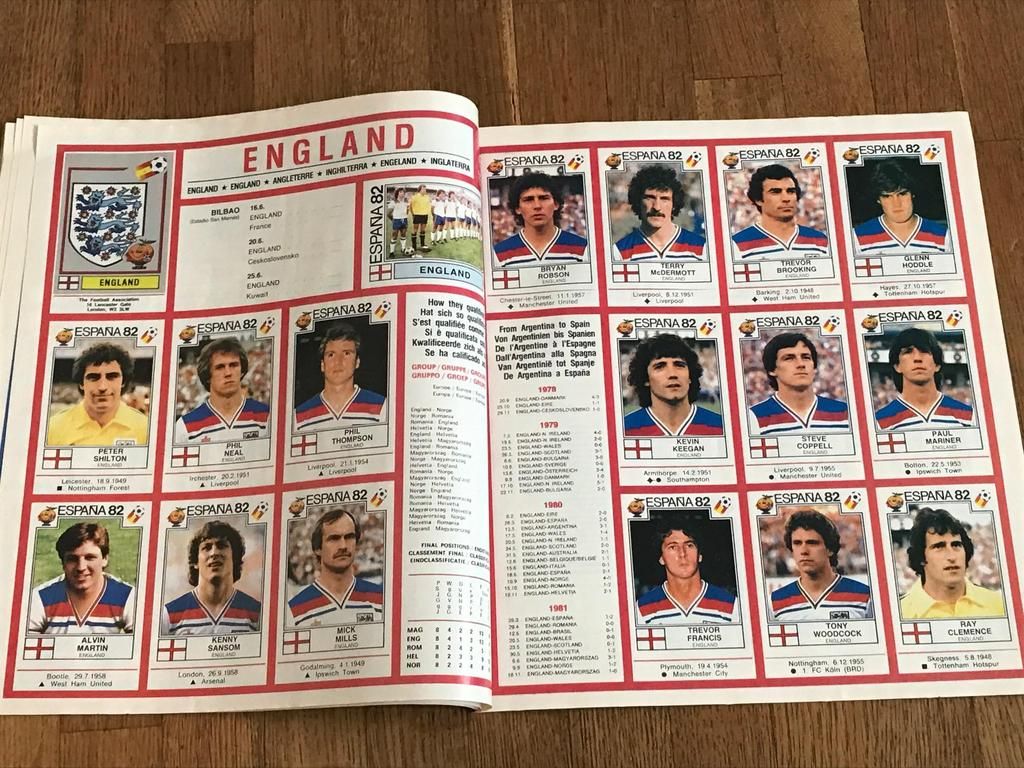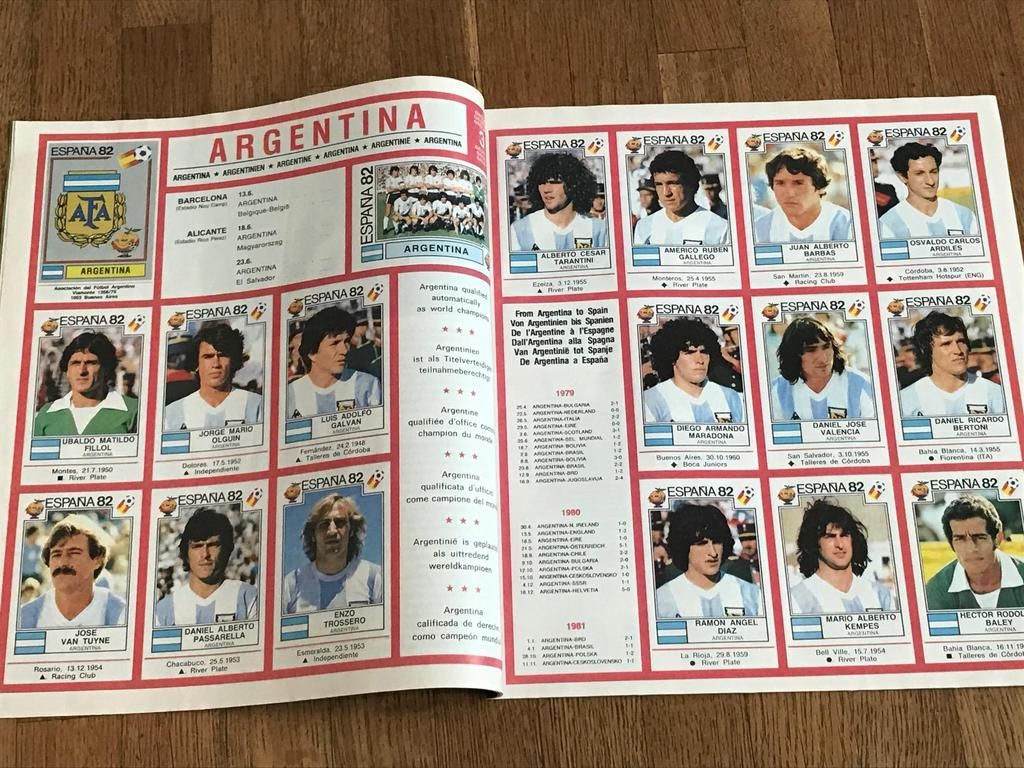 Album of figurines, players, Panini , edition Observer, World Cup, WC ESPANA 82 Suit 400 figurines, all printed. with the players, of all teams, who took part in the Spanish edition of the football World Cup: Algeria, Argentina, Austria, Belgium, Brazil, Cameroon, Czechoslovakia, Chile, El Salvador, France, West Germany, Honduras, England, Northern Ireland, Italy, Yugoslavia, Kuwait, New Zealand, Peru, Poland, Scotland, Spain, Hungary, USSR. With the players who have made football history: DIEGO MARADONA, DANIEL BERTONI, MARIO KEMPES, UBALDO FILLOL, DANIEL PASSARELLA, MENOTTI, SCHACHNER, Prohaska, Pezzey, KRANKEL, HAPPEL, VAN DER ELST, JAN MARIE PFAFF, Renquin, VAN MOER , SOCRATES, OSCAR, ZICO, Edevaldo, ZE SERGIO, TONINHO CEREZO, TELE SANTANA, Tokoto, Abega, FIGUEROA, DUBO, Osbén, Panenka, Masný, BARMOS, KEVIN KEEGAN, GLENN HODDLE, TREVOR BROOKING, MARINER, TREVOR FRANCIS, PHIL NEAL , BRYAN ROBSON, MICHEL PLATINI, SIX, DROPSY, JEAN TIGANA, MAXIME BOSSIS, LARIOS, CHISTIAN LOPEZ, CABALLERO, ROBERTO BETTEGA, FULVIO COLLOVATI, MARCO TARDELLI, CLAUDIO GENTILE, GIANCARLO ANTOGNONI, BRUNO CONTI, DINO ZOFF, ENZO BEARZOT, SUMMER, O'NEILL, NELSON, PAT JENNINGS, QUIROGA, DIAZ, Chumpitaz, CUBILLAS, TIM, ZBIGNIEW BONIEK, GREGOR SIDE, DZIUBA, Smolarek, KENNY DALGLISH, JOE JORDAN, DANNY McGRAIN, JESUS ZAMORA, Migueli, URIA, ENRIQUE SAURA, CARLOS SANTILLANA , JUAN JUANITO, LUIS ARCONADA, DASAJEV, OLEG BLOCHIN, ULI STIELIKE, MANNY KALTZ, KH FORSTER, Brigels, HARALD SCHUMACHER, Dremmler, KARL HEINZ RUMENIGGE, PANTELIC, PASIC, ŠURJAK, ALLOS, FISCHER, Breitner, JARA, Pezzey, Gerets Millecamps Vandereycken, KROL, BRADY, PETERS, BATTISTON, Bathenay, Bessonov, FLYNN, PETER BARNES, RAY CLEMENCE, TERRY BUTCHER, PETER SHILTON, RAY WILKINS, GAETANO SCIREA, ANTONIO CABRINI, GABRIELE ORIALI, STEVE ARCHIBALD, JUNIOR, RENATO, BATISTA, PAULO ISIDORO, Luizinho, RUBEN PAZ, VICTORINO, WINNING THE BOSQUE, GORDILLO .... and many more. overseas edition. Album is in general conditions, as photos