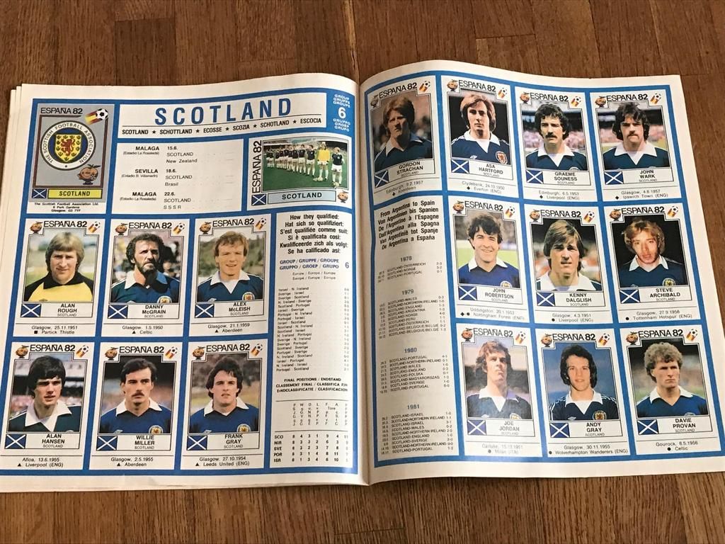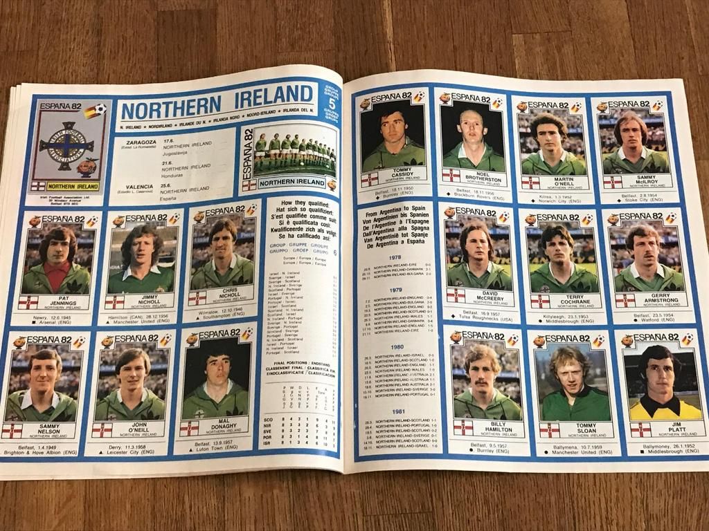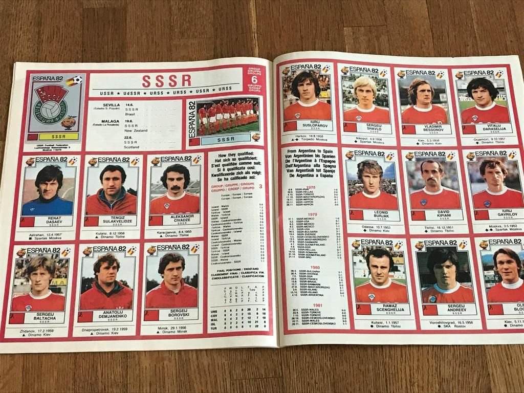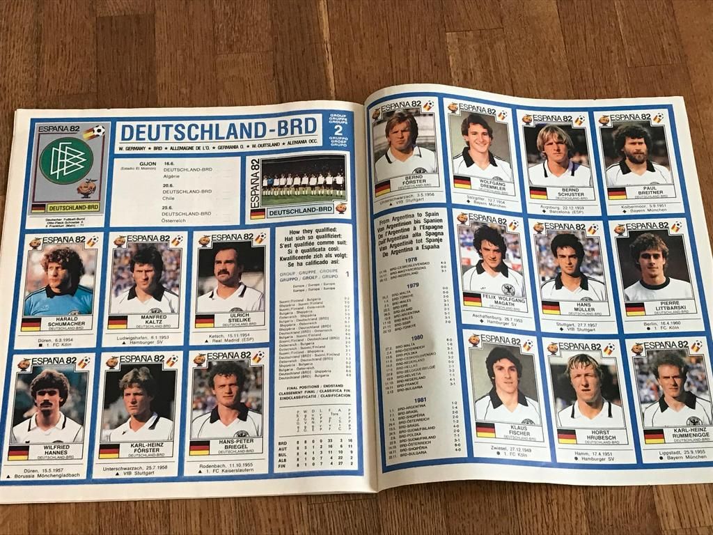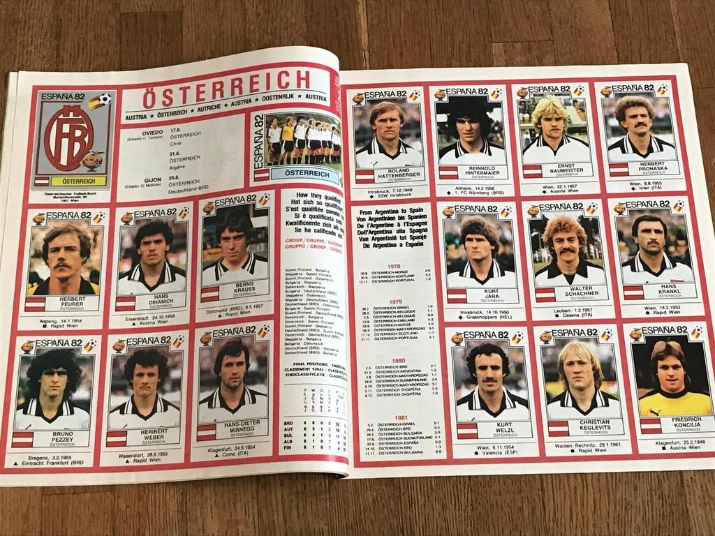 Album of figurines, players, Panini , edition Observer, World Cup, WC ESPANA 82 Suit 400 figurines, all printed. with the players, of all teams, who took part in the Spanish edition of the football World Cup: Algeria, Argentina, Austria, Belgium, Brazil, Cameroon, Czechoslovakia, Chile, El Salvador, France, West Germany, Honduras, England, Northern Ireland, Italy, Yugoslavia, Kuwait, New Zealand, Peru, Poland, Scotland, Spain, Hungary, USSR. With the players who have made football history: DIEGO MARADONA, DANIEL BERTONI, MARIO KEMPES, UBALDO FILLOL, DANIEL PASSARELLA, MENOTTI, SCHACHNER, Prohaska, Pezzey, KRANKEL, HAPPEL, VAN DER ELST, JAN MARIE PFAFF, Renquin, VAN MOER , SOCRATES, OSCAR, ZICO, Edevaldo, ZE SERGIO, TONINHO CEREZO, TELE SANTANA, Tokoto, Abega, FIGUEROA, DUBO, Osbén, Panenka, Masný, BARMOS, KEVIN KEEGAN, GLENN HODDLE, TREVOR BROOKING, MARINER, TREVOR FRANCIS, PHIL NEAL , BRYAN ROBSON, MICHEL PLATINI, SIX, DROPSY, JEAN TIGANA, MAXIME BOSSIS, LARIOS, CHISTIAN LOPEZ, CABALLERO, ROBERTO BETTEGA, FULVIO COLLOVATI, MARCO TARDELLI, CLAUDIO GENTILE, GIANCARLO ANTOGNONI, BRUNO CONTI, DINO ZOFF, ENZO BEARZOT, SUMMER, O'NEILL, NELSON, PAT JENNINGS, QUIROGA, DIAZ, Chumpitaz, CUBILLAS, TIM, ZBIGNIEW BONIEK, GREGOR SIDE, DZIUBA, Smolarek, KENNY DALGLISH, JOE JORDAN, DANNY McGRAIN, JESUS ZAMORA, Migueli, URIA, ENRIQUE SAURA, CARLOS SANTILLANA , JUAN JUANITO, LUIS ARCONADA, DASAJEV, OLEG BLOCHIN, ULI STIELIKE, MANNY KALTZ, KH FORSTER, Brigels, HARALD SCHUMACHER, Dremmler, KARL HEINZ RUMENIGGE, PANTELIC, PASIC, ŠURJAK, ALLOS, FISCHER, Breitner, JARA, Pezzey, Gerets Millecamps Vandereycken, KROL, BRADY, PETERS, BATTISTON, Bathenay, Bessonov, FLYNN, PETER BARNES, RAY CLEMENCE, TERRY BUTCHER, PETER SHILTON, RAY WILKINS, GAETANO SCIREA, ANTONIO CABRINI, GABRIELE ORIALI, STEVE ARCHIBALD, JUNIOR, RENATO, BATISTA, PAULO ISIDORO, Luizinho, RUBEN PAZ, VICTORINO, WINNING THE BOSQUE, GORDILLO .... and many more. overseas edition. Album is in general conditions, as photos