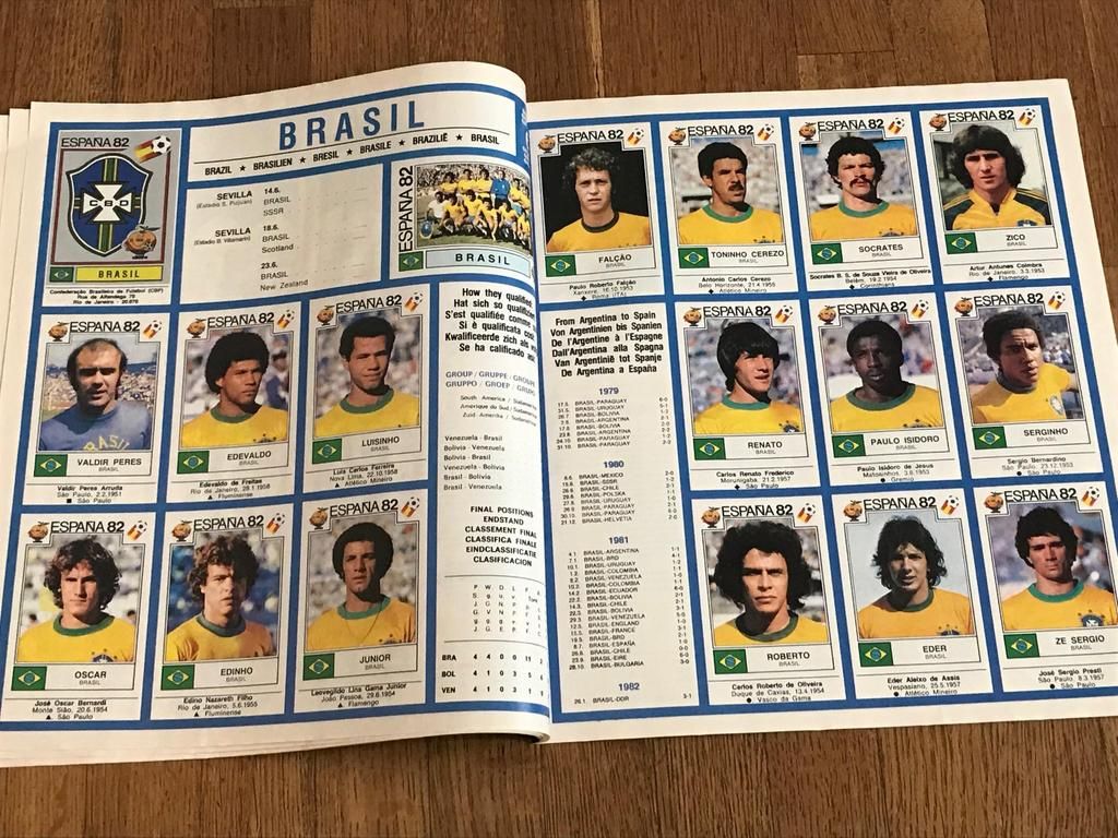 Álbum de figurinhas, jogadores, Sanduíches, edição Observer, Copa do Mundo, WC ESPANA 82 Suit 400 estatuetas, todos impressos. com os jogadores, de todas as equipas, que participaram na edição espanhola do futebol da Copa do Mundo: Argélia, Argentina, Áustria, Bélgica, Brasil, Camarões, Tchecoslováquia, Chile, El Salvador, França, Alemanha Ocidental, Honduras, Inglaterra, Irlanda do Norte, Itália, Iugoslávia, Kuwait, Nova Zelândia, Peru, Polônia, Escócia, Espanha, Hungria, URSS. Com os jogadores que fizeram a história do futebol: DIEGO MARADONA, DANIEL BERTONI, MARIO KEMPES, UBALDO FILLOL, DANIEL PASSARELLA, Menotti, Schachner, Prohaska, Pezzey, KRANKEL, Happel, VAN der Elst, JAN MARIE PFAFF, Renquin, Van Moer , SÓCRATES, OSCAR, ZICO, Edevaldo, Zé Sérgio, TONINHO CEREZO, TELE SANTANA, Tokoto, Abega, Figueroa, DUBO, Osbén, Panenka, Masny, BARMOS, KEVIN KEEGAN, GLENN HODDLE, TREVOR BROOKING, navegador, TREVOR FRANCIS, PHIL NEAL , BRYAN ROBSON, MICHEL PLATINI, SEIS, hidropisia, JEAN TIGANA, MAXIME BOSSIS, LARIOS, CHISTIAN LOPEZ, Caballero, ROBERTO BETTEGA, FULVIO COLLOVATI, MARCO TARDELLI, CLAUDIO GENTILE, GIANCARLO ANTOGNONI, BRUNO CONTI, DINO ZOFF, ENZO BEARZOT, VERÃO, O'Neill, NELSON, PAT JENNINGS, Quiroga DIAZ, Chumpitaz, CUBILLAS, TIM, ZBIGNIEW BONIEK Gregor LADO, Dziuba, Smolarek, KENNY DALGLISH, JOE JORDAN, DANNY McGRAIN, JESUS ZAMORA, Migueli, URIA, ENRIQUE SAURA, CARLOS SANTILLANA , JUAN JUANITO, LUIS ARCONADA, DASAJEV, OLEG BLOCHIN, ULI STIELIKE, MANNY KALTZ, KH FORSTER, Brigels, HARALD SCHUMACHER, Dremmler, KARL HEINZ Rumenigge, pantelic, PASIC, ŠURJAK, ALLOS, FISCHER, Breitner, jara Pezzey, Gerets Millecamps Vandereycken, KROL, BRADY, Peters, BATTISTON, Bathenay, Bessonov, Flynn, PETER BARNES, RAY CLEMENCE, TERRY BUTCHER, PETER SHILTON, RAY WILKINS, GAETANO SCIREA, ANTONIO CABRINI, GABRIELE Oriali, STEVE ARCHIBALD, JÚNIOR, RENATO, Batista, PAULO ISIDORO, Luizinho, RUBEN PAZ, VICTORINO, vencendo o BOSQUE, GORDILLO .... e muitos mais. edição internacional. Álbum está em condições gerais, como fotos