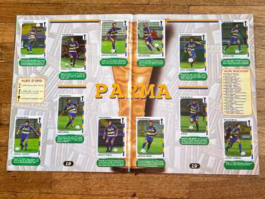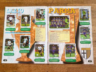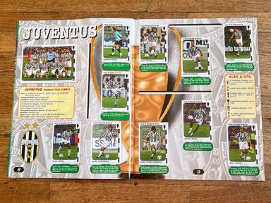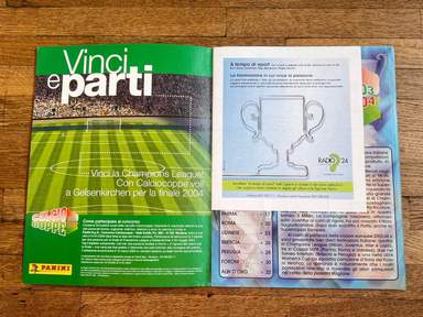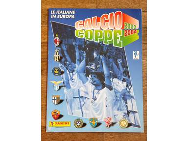 Αυτοκόλλητο άλμπουμ, ποδοσφαιριστές, έκδοση Panini, Κύπελλα ποδοσφαίρου 2003 2004, ΟΛΟΚΛΗΡΩΜΕΝΟ, 180 αυτοκόλλητα. Οι εικόνες της συλλογής απεικονίζουν όλους τους παίκτες όλων των ιταλικών ομάδων που συμμετείχαν στις ευρωπαϊκές διοργανώσεις συλλόγων της UEFA (Champions League, Κύπελλο UEFA. Προκριμένες ομάδες: Μίλαν, Γιουβέντους, Ίντερ, Λάτσιο, Πάρμα, Ρόμα, Μπρέσια, Περούτζια, Φορόνι , με παίκτες που έγραψαν την ιστορία του ποδοσφαίρου: Paolo Maldini, Dida, Cafu, Rivaldo, Gattuso, Inzaghi, Pirlo, Shevchenko, Buffon, Ferrara, Thuram, Nedved, Camoranesi, Tudor, Del Piero, Trezeguet, Miccoli , Toldo , Cordoba . Chivu, Mancini, Totti, Petruzzi, Mauri, Roberto Baggio, Ze Maria, Vryzas, ... και πολλοί άλλοι. Άλμπουμ σε γενική κατάσταση όπως φαίνεται στις φωτογραφίες JAP
