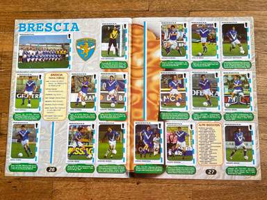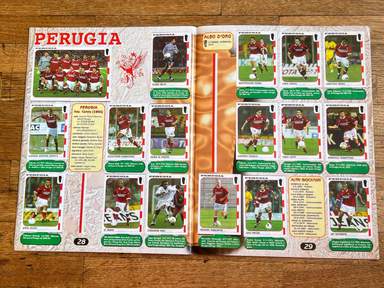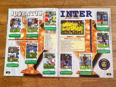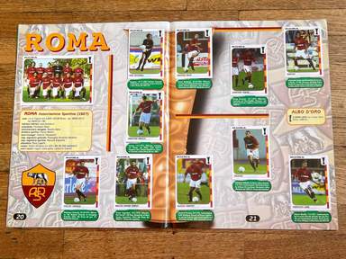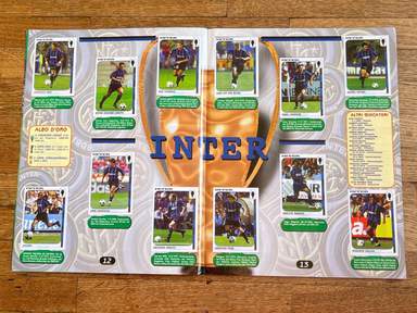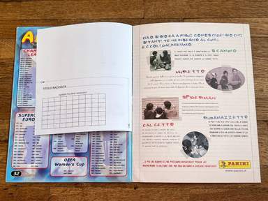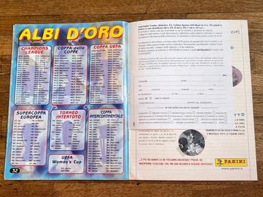 POR Álbum de figurinhas, jogadores de futebol, edição Panini, Copas de futebol 2003 2004, COMPLETO, 180 figurinhas. As imagens da coleção retratam todos os jogadores de todas as seleções italianas que participaram nas competições europeias de clubes da UEFA (Liga dos Campeões, Taça UEFA. Equipas qualificadas: Milan, Juventus, Inter, Lazio, Parma, Roma, Brescia, Perugia, Foroni , com jogadores que fizeram a história do futebol: Paolo Maldini, Dida, Cafu, Rivaldo, Gattuso, Inzaghi, Pirlo, Shevchenko, Buffon, Ferrara, Thuram, Nedved, Camoranesi, Tudor, Del Piero, Trezeguet, Miccoli, Toldo, Córdoba , Materazzi , Cannavaro , Zanrtti , Vieri , Recoba , Peruzzi , Stam , Mihailovic , Couto , Cesar , Oddo , Fiore , Claudio Lopez , Corradi , Frey , Morfeo , Barone , Nakata , Adriano , Gilardino , Panucci , Candela , Samuel, Emerson, Chivu, Mancini, Totti, Petruzzi, Mauri, Roberto Baggio, Zé Maria, Vryzas, ... e muitos outros Álbum em estado geral conforme fotos GRE