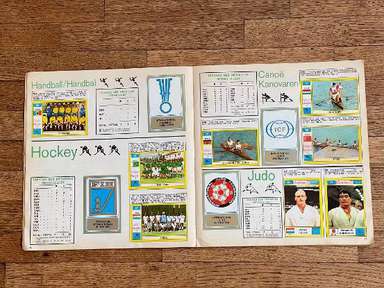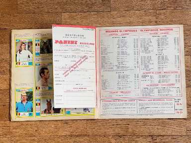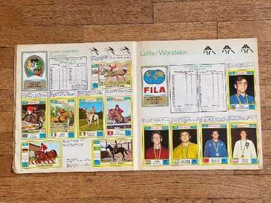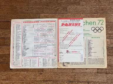 ENG Sticker album, Panini edition, original from 1972, MUNCHEN 72, Complete, 270 stickers and 81 stamps. The images in the collection depict the protagonist athletes in the various disciplines (Athletics, Archery, Basketball, Boxing, Canoeing, Cycling, Diving, Horse Riding, Fencing, Field Hockey, Football, Gymnastics, Handball, Judo, Modern Pentathlon , Rowing, Sailing, Shooting, Swimming, Volleyball, Water Polo, Weightlifting, Wrestling) of the Games of the XX Olympiad, held in Munich, West Germany, from 26 August to 11 September 1972. Many samples in the album: Mark Spitz (USA, swimming): participates in 7 races (100 and 200 meters freestyle; 100 and 200 meters butterfly; 4x100 and 4x200 freestyle relay; 4x100 mixed relay) in just 8 days, winning them all and setting as many world records. East German Roland Matthes wins the 100 and 200 m backstroke for the second time in a row. Sixteen-year-old Australian Shane Gould wins 3 gold medals (200 and 400 m freestyle, 200 m medley), 1 silver and 1 bronze. Eighteen-year-old Novella Calligaris from Padua, with a silver in the 400 m freestyle, and two bronzes in the 800 m freestyle and the 400 m medley, won the first Olympic medals in the history of Italian swimming. The Venetian fencer Antonella Ragno ends her career in Monaco with gold in foil. Diver Klaus Dibiasi confirms the gold obtained in the previous edition of the Games from the platform. The Soviet Valerij Borzov wins the 100 and 200 m dash. In the 200 m race the Italian Pietro Mennea wins, in his first participation in the Olympics, the bronze medal behind the American Larry Black. In the middle distance races the Finns win again: Pekka Vasala wins the 1,500 m, Lasse Virén the 5,000 and 10,000 meters. Viren will reconfirm himself on both distances at the following Olympics. Ugandan John Akii-Bua wins the 400m hurdles with a world record: he is the first Ugandan to win an Olympic gold. Black Americans Vince Matthews and Wayne Collett, gold and silver in the 400 m dash. The Japanese still dominate the scene in men's gymnastics: Sawao Katō is a gold medalist in the all-around and team competition, and in the parallel bars. The diminutive Soviet gymnast Olga Korbut wins two golds and a silver in the individual apparatus. Cuban boxer Teófilo Stevenson wins the first of 3 consecutive Olympic titles (1972, 1976. 1980). The Dutch Wim Ruska becomes the first and so far only judoka to win two titles in the same edition, winning both the +93 kg category and the Open category. The French cyclist Daniel Morelon repeats the success of Mexico City in speed. Field hockey saw Pakistan, the defending champion, beaten 1-0 in the final by West Germany. Ulrike Meyfarth (West Germany) at 16 years old manages to defeat all her opponents in the high jump. In the basketball tournament, the USA saw the streak of 63 consecutive victories at the Olympics, which began in 1936, interrupted by the defeat in the final by the Soviet Union, at the end of a match which in the USA is remembered as the most controversial in the history of international basketball. This edition of the Olympics was marked by a tragic episode: the murder of eleven Israeli athletes by a commando of Palestinian terrorists from Black September. album in general condition as shown in photos