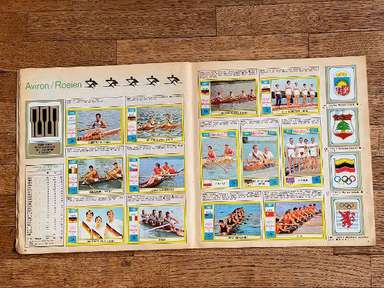 ARB ألبوم الملصقات، طبعة بانيني، أصلي من عام 1972، موناكو، كامل، 270 ملصقًا و81 طابعًا. الصور الموجودة في المجموعة تصور أبطال الرواية في مختلف التخصصات (ألعاب القوى، الرماية، كرة السلة، الملاكمة، التجديف، ركوب الدراجات، الغوص، ركوب الخيل، المبارزة، الهوكي، كرة القدم، الجمباز، كرة اليد، الجودو، الخماسي الحديث، التجديف، الإبحار) (الرماية، السباحة، الكرة الطائرة، كرة الماء، رفع الأثقال، المصارعة) من الألعاب الأولمبية العشرين التي أقيمت في ميونيخ، ألمانيا الغربية، في الفترة من 26 أغسطس إلى 11 سبتمبر 1972. العديد من العينات في الألبوم: مارك سبيتز (الولايات المتحدة الأمريكية، السباحة) : شارك في 7 سباقات (100 و200 متر حرة، 100 و200 متر فراشة، 4x100 و4x200 تتابع حر، 4x100 تتابع مختلط) في 8 أيام فقط، وفاز بها جميعًا وحقق أكبر عدد من الأرقام القياسية العالمية. فاز الألماني الشرقي رولاند ماتيس بسباق 100 متر. و 200 م ظهر للمرة الثانية على التوالي. الأسترالي شين جولد البالغ من العمر ستة عشر عامًا يفوز بثلاث ميداليات ذهبية (200 و400 متر حرة، 200 متر متنوع)، 1 فضية و1 برونزية. ثمانية عشر عامًا نوفيلا كاليجاريس من بادوفا، مع فضية في سباق 400 متر سباحة حرة وبرونزيتين في سباق 800 متر سباحة حرة وسباق 400 متر متنوع، فازت بأول ميداليات أولمبية في تاريخ السباحة الإيطالية. أنهت المبارزة البندقية أنطونيلا راجنو مسيرتها المهنية في موناكو بحصولها على الميدالية الذهبية. يؤكد الغواص كلاوس ديبياسي الذهب الذي تم الحصول عليه في النسخة السابقة من الألعاب من المنصة. السوفييتي فاليريج بورزوف يفوز بسباق 100 و200 متر. وفي سباق 200 متر، فاز الإيطالي بيترو مينيا، في أول مشاركة له في الأولمبياد، بالميدالية البرونزية خلف الأمريكي لاري بلاك. وفي سباقات المسافات المتوسطة، فاز الفنلنديون مرة أخرى: فاز بيكا فاسالا بسباق 1500 متر، ولاسي فيرين بسباق 5000 و10000 متر. سيعيد Viren تأكيد نفسه على كلا المسافتين في الألعاب الأولمبية التالية. الأوغندي جون أكي بوا يفوز بسباق 400 متر حواجز برقم قياسي عالمي: وهو أول أوغندي يفوز بميدالية ذهبية أولمبية. الأمريكيان الأسودان فينس ماثيوز وواين كوليت، ذهبيتان وفضيتان في سباق 400 متر. لا يزال اليابانيون يهيمنون على الساحة في الجمباز الرجالي: ساواو كاتو حائز على الميدالية الذهبية في المنافسة الشاملة والفرقية وفي المتوازيين. فازت لاعبة الجمباز السوفيتية ضئيلة الحجم أولغا كوربوت بميداليتين ذهبيتين وفضية في الأجهزة الفردية. الملاكم الكوبي تيوفيلو ستيفنسون يفوز بأول ألقاب أولمبية من أصل 3 ألقاب متتالية (1972، 1976. 1980). أصبح الهولندي ويم روسكا لاعب الجودو الأول والوحيد حتى الآن الذي يفوز بلقبين في نفس النسخة، حيث فاز بكل من فئتي +93 كجم والفئة المفتوحة. الدراج الفرنسي دانييل موريلون يكرر نجاح مكسيكو سيتي في السرعة. وشهدت لعبة الهوكي الميداني هزيمة باكستان، حاملة اللقب، بنتيجة 1-0 في المباراة النهائية أمام ألمانيا الغربية. تمكنت أولريكه ميفارث (ألمانيا الغربية) البالغة من العمر 16 عامًا من هزيمة جميع خصومها في الوثب العالي. في بطولة كرة السلة، شهدت الولايات المتحدة سلسلة من 63 انتصارًا متتاليًا في الألعاب الأولمبية، التي بدأت عام 1936، وتوقفت بسبب الهزيمة في المباراة النهائية على يد الاتحاد السوفيتي، في نهاية مباراة تُذكر في الولايات المتحدة على أنها الأكثر أهمية. لقد اتسمت هذه النسخة من الألعاب الأولمبية بحادثة مأساوية: مقتل أحد عشر رياضياً إسرائيلياً على يد كوماندوز من الإرهابيين الفلسطينيين في أيلول الأسود. الألبوم بحالته العامة كما هو موضح في الصور CHI 贴纸专辑,帕尼尼版,原版 1972 年,摩纳哥,完整,270 张贴纸和 81 张邮票。 该系列中的图像描绘了各个项目(田径、射箭、篮球、拳击、皮划艇、自行车、跳水、骑马、击剑、曲棍球、足球、体操、手球、柔道、现代五项、赛艇、帆船)的主角运动员1972 年 8 月 26 日至 9 月 11 日在西德慕尼黑举行的第 20 届奥林匹克运动会(射击、游泳、排球、水球、举重、摔跤)。专辑中的许多样本: