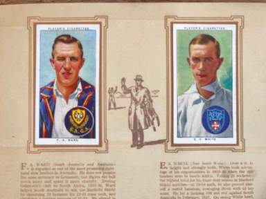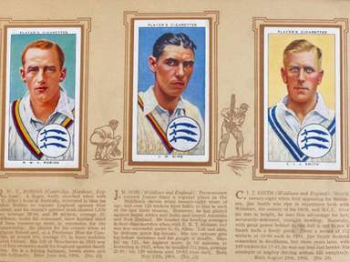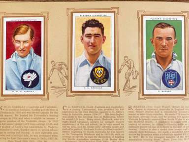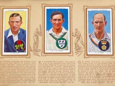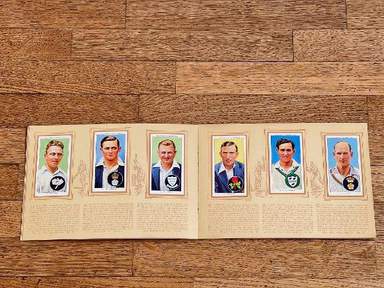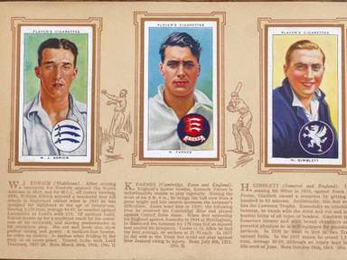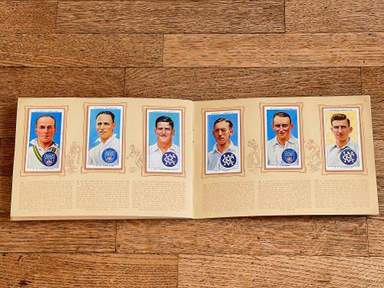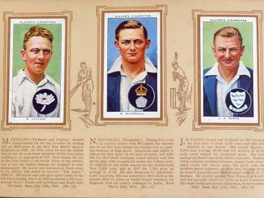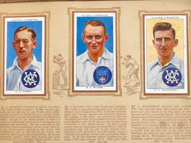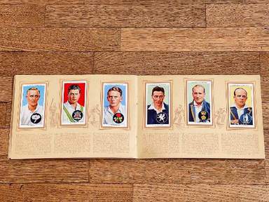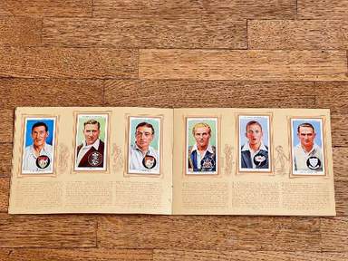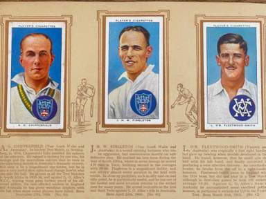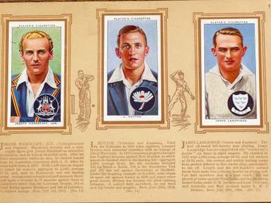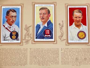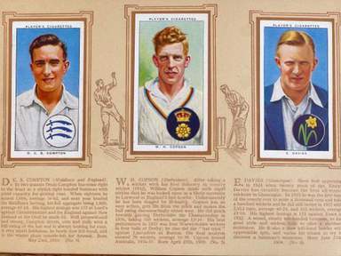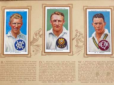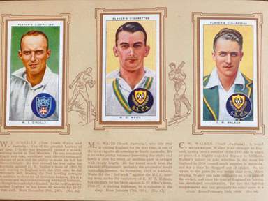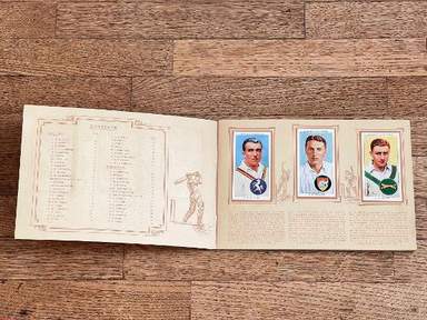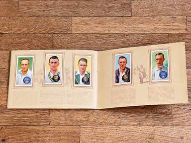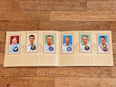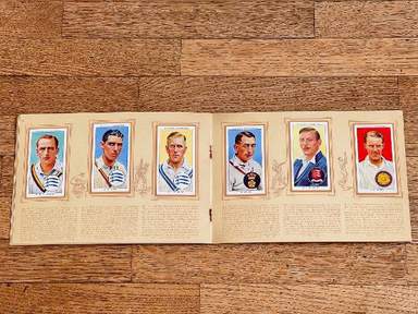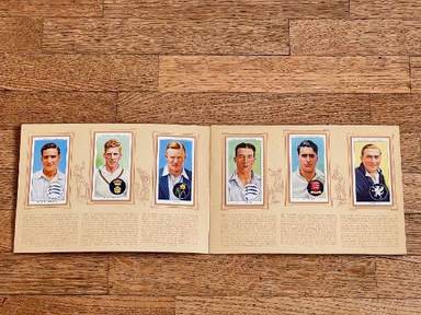 • Άλμπουμ με αυτοκόλλητα, έκδοση John Player & Sons, πρωτότυπο από το 1938. ΠΑΙΚΤΕΣ ΚΡΙΚΕΤ . ΠΛΗΡΕΣ , 50 φύλλα . Οι εικόνες της συλλογής απεικονίζουν τους καλύτερους παίκτες κρίκετ, εκ των οποίων 34 από αγγλικές ομάδες και 16 από την ομάδα της Αυστραλίας. Αγγλία: E.G. Ames, C.J. Barnett, D.C.S. Compton, W.H. Copson, E. Davies, W.J. Edrich, K. Farnes, H. Gimblett, T.W. Godard, A.R. Gover, W.R. Hammond, Joseph Hammond Jr, L. Hutton, James Langridge, M. Leyland, H. McCorkell, J.H. Parks , E. Paynter , R.T.D. Perks, G.H. Pope, R.W.V. Robins, J.M. Sims, C.I.J. Smith , D. Smith , T.P.B. Smith, J.E. Timms, H. Verity, W. Voce, C. Washbrook, W. Wellard, T.S. Worthington, R.E.S. Wyatt, W.D. Yardley. Αυστραλία: C.L. Badcock, Sidney Barnes, A. Barnett, W.A. Brown, A.G. Chipperfield, J.H.W. Fingleton, L. O'B. Fleetwood Smith, Lindsey Hassett, Sir Donald Bradman, J. McCormick, W.J. O'Really, M.G. Waite, C.W. Walker, F.A. Ward, E.S. Λευκό .Άλμπουμ σε γενική κατάσταση όπως φαίνεται στις φωτογραφίες.