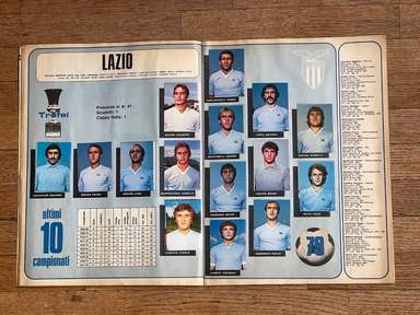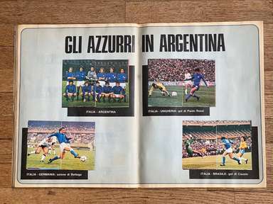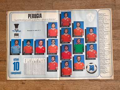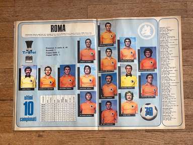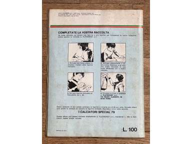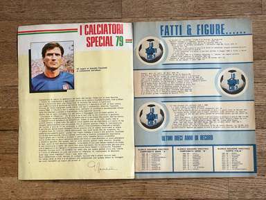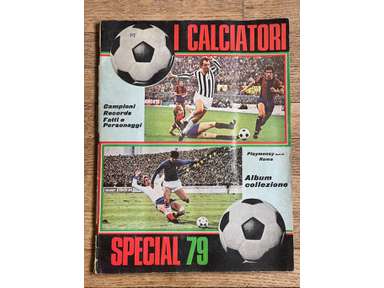 Album figurine, edizione Playmoney , CALCIATORI Special 79 ,COMPLETO ; di 578 figurine . Le immagini della collezione raffigurano , tutti i giocatori , di tutte le squadre ,che presero parte al campionato italiano di calcio 1978 79 , di Serie A e Serie B , per club ; una selezione dei migliori giocatori delle squadre della Serie C1 ; una sezione dedicata alle nazionali ( Brasile , Olanda , Italia , Argentina ,Iran , Francia , Germania , Spagna ....) ; una sezione dedicata agli azzurri al mondiale di Argentina 78 ; una sezione dedicata a Mario Kempes . Formazioni presenti nell'album : Ascoli , Atalanta , Avellino , Bologna , Catanzaro , Fiorentina , Inter , Juventus , L. R. Vicenza , Lazio , Milan , Napoli , Perugia , Roma , Torino , Verona . Serie B :Bari, Brescia, Cagliari, Cesena, Foggia, Genoa, Lecce, Monza , Nocerina, Palermo , Pescara , Pistoiese , Rimini , Sambenedettese , Sampdoria, SPAL Ferrara, Taranto, Terni, Udine, Varese . Con giocatori che hanno fatto la storia del calcio mondiale :Luciano Bodini , Pier Luigi Pizzaballa , Gabriele Andena , Amedeo Baldizzone , Alberto Cavasin , Giorgio Mastropasqua , Giovanni Mei , Giovanni Vavassori , Battista Festa , Gian Pietro Marchetti , Roberto Tavola , Remo Zavarise ,Giuseppe Zinetti , Franco Mancini ,Amos Adani , Angelo Cereser ,Mauro Bellugi (capitano) ,Franco Cresci , Tazio Roversi ,Stefano Garuti , Giorgio Valmassoi , Franco Colomba ,Fernando Viola , Gian Pietro Tagliaferri , Claudio Maselli , Franco Nanni , Ennio Mastalli , Adelmo Paris , Lionello Massimelli , Stefano Chiodi , Gianluca De Ponti ,Giuliano Fiorini ,Giovanni Galli , Pietro Carmignani ,Giancarlo Antognoni , Domenico Caso , Piero Braglia ,Antonio Di Gennaro , Andrea Orlandini , Pierino Prati , Ezio Sella , Claudio Desolati , Luigi Sacchetti , Giovanni Pirazzini , Nevio Scala , Franco Bergamaschi , Luigi Delneri , Nerio Ulivieri , Maurizio Iorio , Roberto Pruzzo , Giuseppe Damiani , Ignazio Arcoleo , Fausto Silipo , Ivano Bordon , Giuseppe Baresi , Giacinto Facchetti , Odoacre Chierico , Gabriele Oriali , Alessandro Altobelli , Pietro Anastasi , Alessandro Scanziani , Dino Zoff , Claudio Gentile , Gaetano Scirea , Antonio Cabrini , Luciano Spinosi , Franco Causio , Antonello Cuccureddu , Romeo Benetti , Giuseppe Furino , Marco Tardelli , Pietro Fanna , Gian Piero Gasperini , Roberto Bettega , Roberto Boninsegna , Pietro Paolo Virdis , Luciano Marangon , Paolo Rossi , Renato Faloppa , Vito Callioni , Claudio Garella , Lionello Manfredonia , Bruno Giordano , Renzo Garlaschelli , Franco Cordova , Vincenzo D'Amico , Giuseppe Wilson , Roberto Badiani , Enrico Albertosi , Franco Baresi , Fulvio Collovati , Aldo Maldera , Maurizio Turone , Alberto Bigon , Ruben Buriani , Fabio Capello , Gianni Rivera , Egidio Calloni , Giorgio Morini , Giuseppe Bruscolotti , Moreno Ferrario , Antonio Juliano , Giuseppe Savoldi , Luciano Chiarugi , Nello Malizia , Pierluigi Frosio , Salvatore Bagni , Renato Curi , Walter Novellino , Mauro Amenta , Gianni De Biasi , Graziano Piagnerelli , Roberto Galbiati , Angelo Orazi , Franco Tancredi , Francesco Rocca , Sergio Santarini , Bruno Conti , Agostino Di Bartolomei , Giancarlo De Sisti , Roberto Scarnecchia , Pierino Prati , Michele De Nadai , Giannantonio Sperotto , Giuliano Terraneo , Luciano Castellini , Luigi Danova , Paolino Pulici , Francesco Graziani , Renato Zaccarelli , Claudio Sala , Eraldo Pecci , Salvatore Garritano , Franco Superchi , Klaus Bachlechner , Piergiorgio Negrisolo ,Gianfranco Zigoni , Emiliano Mascetti , Stefano Trevisanello ..... e molti altri . La Serie A 1978-1979 è stata la 77ª edizione della massima serie del campionato italiano di calcio (la 47ª a girone unico), disputata tra il 1º ottobre 1978 e il 13 maggio 1979 e conclusa con la vittoria del Milan, al suo decimo titolo. Capocannoniere del torneo è stato Bruno Giordano (Lazio) con 19 reti . Album in condizione generale come da foto.