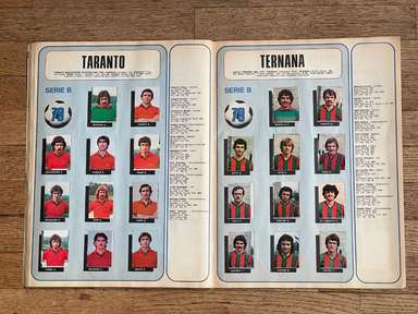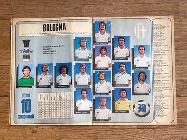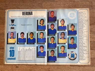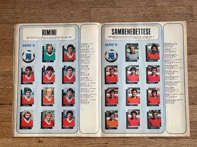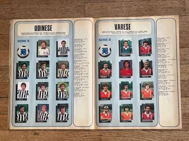 GRE Άλμπουμ με αυτοκόλλητα, έκδοση Playmoney, Special 79 ποδοσφαιριστές, πλήρης. από 578 αυτοκόλλητα. Οι εικόνες της συλλογής απεικονίζουν όλους τους παίκτες, από όλες τις ομάδες, που συμμετείχαν στο ιταλικό πρωτάθλημα ποδοσφαίρου 1978-79, Serie A και Serie B, για συλλόγους. μια επιλογή από τους καλύτερους παίκτες από τις ομάδες της Serie C1. ένα τμήμα αφιερωμένο στις εθνικές ομάδες ( Βραζιλία , Ολλανδία , Ιταλία , Αργεντινή , Ιράν , Γαλλία , Γερμανία , Ισπανία ....); ένα τμήμα αφιερωμένο στους Ατζούρι στο Παγκόσμιο Κύπελλο Αργεντινής 78. μια ενότητα αφιερωμένη στον Μάριο Κέμπες. Σχηματισμοί που περιλαμβάνονται στο άλμπουμ: Ascoli, Atalanta, Avellino, Bologna, Catanzaro, Fiorentina, Inter, Juventus, L.R. Vicenza, Lazio, Milan, Naples, Perugia, Rome, Turin, Verona. Serie B: Μπάρι, Μπρέσια, Κάλιαρι, Τσεζένα, Φότζια, Τζένοα, Λέτσε, Μόντσα, Νοτσερίνα, Παλέρμο, Πεσκάρα, Πιστοιέζε, Ρίμινι, Σαμπενεντέτσε, Σαμπντόρια, ΣΠΑΛ Φεράρα, Τάραντα, Τέρνι, Ούντινε, Βαρέζε. Με παίκτες που έχουν γράψει την ιστορία του παγκόσμιου ποδοσφαίρου: Luciano Bodini , Pier Luigi Pizzaballa , Gabriele Andena , Amedeo Baldizzone , Alberto Cavasin , Giorgio Mastropasqua , Giovanni Mei , Giovanni Vavassori , Battista Festappe , Gian Pietroisea , Robertouseo Ο Zinetti, ο Franco Mancini, ο Amos Adani, ο Angelo Cereser, ο Mauro Bellugi (καπετάνιος), ο Franco Cresci, ο Tazio Roversi, ο Stefano Garuti, ο Giorgio Valmassoi, ο Franco Colomba, ο Fernando Viola, ο Gian Pietro Tagliaferri, ο Claudio Maselli, ο Franco Nanni, ο Ennio, ο Adeli, ο Claudio Maselli Lionello Massimelli Stefano Chiodi Gianluca De Ponti Giuliano Fiorini Giovanni Galli Pietro Carmignani Giancarlo Antognoni Domenico Caso Piero Braglia Antonio Di Gennaro Andrea Orlandini Pierino Prati Ezio Sella Claudio Desolati Luigi Sacchetti Giovannii Ντελένι Γιοβάνι Πιράζ vieri Maurizio Iorio Roberto Pruzzo Giuseppe Damiani Ignazio Arcoleo Fausto Silipo Ivano Bordon Giuseppe Baresi Giacinto Facchetti Odoacre Chierico Gabriele Oriali Alessandro Altobelli Pietro Anastasi Alessandro Scanziani , Dino Zoff , Claudio Gentile , Gaetano Scirea , Antonio Cabrini , Luciano Angoo Spinousi ti , Giuseppe Furino , Marco Tardelli , Pietro Fanna , Gian Piero Gasperini , Roberto Bettega , Roberto Boninsegna , Pietro Paolo Virdis , Luciano Marangon , Paolo Rossi , Renato Faloppa , Vito Callioni , Claudio Garella , Lionello Manfredonia , Bruno Giordala , Renzomi , Renzomi Useppe Wilson , Roberto Badiani , Enrico Albertosi , Franco Baresi , Fulvio Collovati , Aldo Maldera , Maurizio Turone, Alberto Bigon, Ruben Buriani, Fabio Capello, Gianni Rivera, Egidio Calloni, Giorgio Morini, Giuseppe Bruscolotti, Giuseppe Bruscolottio, Μορένο Chiarugi, Nello Malizia, Pierluigi Frosio, Salvatore Bagni, Renato Curi, Walter Novellino, Mauro Amenta , Gianni De Biasi , Graziano Piagnerelli , Roberto Galbiati , Angelo Orazi , Franco Tancredi , Francesco Rocca , Sergio Brutolonoost De Sisti , Roberto Scarnecchia , Pierino Prati , Michele De Nadai , Giannantonio Sperotto , Giuliano Terraneo , Luciano Castellini , Luigi Danova , Paolino Pulici , Francesco Graziani , Renato Zaccarelli , Claudio Salacrito , Claudio Salacrit chlechner , Piergiorgio Negrisolo , Gianfranco Zigoni , Emiliano Mascetti , Stefano Trevisanello ..... και πολλοί άλλοι . Η Serie A 1978-1979 ήταν η 77η διοργάνωση της κορυφαίας κατηγορίας του ιταλικού πρωταθλήματος ποδοσφαίρου (η 47η σε έναν όμιλο), παίχτηκε μεταξύ 1ης Οκτωβρίου 1978 και 13 Μαΐου 1979 και τελείωσε με τη νίκη της Μίλαν στον δέκατο τίτλο της. . Πρώτος σκόρερ της διοργάνωσης ήταν ο Μπρούνο Τζορντάνο (Λάτσιο) με 19 γκολ. Το άλμπουμ σε γενική κατάσταση όπως φαίνεται στις φωτογραφίες.