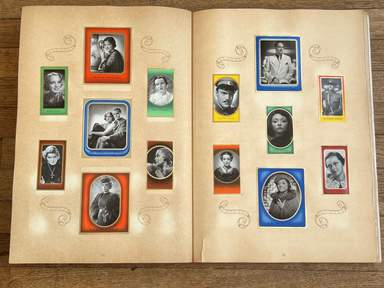 Альбом с наклейками. Сигарета Dresden edition, оригинал 1936 года, шоу и ТВ, КИНОЗВЕЗДЫ, В КОМПЛЕКТЕ, 250 карт. Когда вы купили пачку сигарет, вы получили карту, и идея заключалась в том, чтобы собрать все карты и положить их в альбом. Это было привычное явление, и коллекционирование этих карт было любимым занятием. Альбом и сборник использовались в качестве средства пропаганды зарождающейся нацистской партии. На изображениях в коллекции запечатлены знаменитости мирового кинематографа, всемирно известные актеры и актрисы всех национальностей: Бениамино Джильи, Ида Лупино, Стэн Лорел, Оливер Харди, Лилиан Харви, Ширли Темпл, Ренате Мюллер, Паула Денк, Грета Гарбо, Марлен Дитрих. , Кэри Грант, Гэри Купер, Кларк Гейбл, Клодетт Колберт, Лил Даговер, Бриджит Хорни, Джо Хистерс, Карола Хон, Лида Баарова, Вилли Фрич, Марта Эггерт, Иван Петрович, Аннабелла, Карола Хон, Пол Кемп, Мария Чеботарь, Сильвия Сидни , Пола Негри , Иса Миранда , Клэр Тревор , Ханс Альберс , Магда Шнайдер , Джанетт Макдональд , Ханс Мозер , Лиана Хейд , Рита Кансино , Мона Барри , Джоан Кроуфорд , Норма Ширер , Долорес Костелло , Паула Уэссели , Иса Миранда , Гаст Диссл , Дженни Джуго, Кэт фон Надь, Энни Ондра, Айно Берго, Хелена Питт, Адольф Вольбрук, Луи Гравер, Сьюзи Ланнер, Густав Фролих, Инге Лист, Марилуиза Клаудиус, Джанет Гайно, Камилла Хорн, Те Рри Уокер , Мэри Карлайл , Лоретта Янг , Джин Харлоу , Олли фон Флинт , Гарри Фил , Джун Лэнг Симона Саймон ... и многие другие . зарубежное издание. это не издание Panini. Альбом сфотографирован целиком, страница за страницей. Продается тот объект, который виден на фотографиях. альбом в общем состоянии как на фото