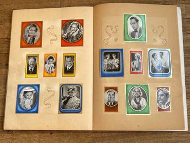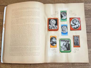 album di figurine . edizione Gemeinschaftsauder zigarettenind , originale del 1936 , spettacolo e tv , STELLE DEL CINEMA , COMPLETO , 250 cards . Quando compravi un pacchetto di sigarette, ricevevi una carta e l'idea era di raccogliere tutte le carte e metterle nell'album. Questo era un fenomeno familiare e raccogliere queste carte era il passatempo preferito. L' album e la collezione erana usati come veicolo di propaganda del nascente partito nazista . Le imagine della raccolta , raffigurano le celebrita' del cinema internazionale , attori ed attrici , di fama mondiale , di ogni nazionalita': Beniamino Gigli , Ida Lupino ,Stan Laurel , Oliver Hardy , Lilian Harvey , Shirley Temple , Renate Muller , Paula Denk , Greta Garbo , Marlene Dietrich , Cary Grant , Gary Cooper , Clark Gable , Claudette Colbert , Lil Dagover , Brigitte Horney , Joh Heesters , Carola Hohn , Lida Baarova , Willy Fritsch , Marta Eggerth , Iwan Petrovich , Annabella , Carola Hohn , Paul Kemp , Maria Cebotari , Sylvia Sidney , Pola Negri , Isa Miranda , Claire Trevor , Hans Albers , Magda Schneider , Janette Mc Donald , Hans Moser , Liane Haid , Rita Cansino , Mona Barrie , Joan Crawford , Norma Shearer , Dolores Costello , Paula Wessely , Isa Miranda , Gust Diessl , Jenny Jugo , Kathe Von Nagy , Anny Ondra , Aino Bergo ,Helena Pitt , Adolf Wohlbruck , Louis Graveure , Susy Lanner , Gustav Frohlich , Inge List , Marieluise Claudius , Janet Gayno , Camilla Horn , Terry Walker ,Mary Carlisle , Loretta Young , Jean Harlow , Olly Von Flint , Harry Fiel , June Lang Simone Simon , ... e molti altri . edizione estera . non e' un edizione Panini . album fotografato integralmente , pagina per pagina . l'oggetto in vendita e' quello visibile nelle foto . album in condizione generale come da foto