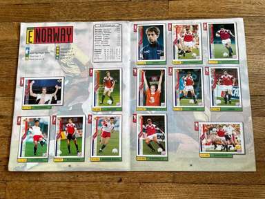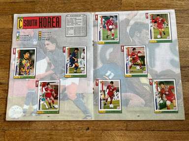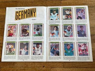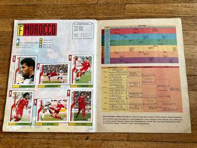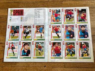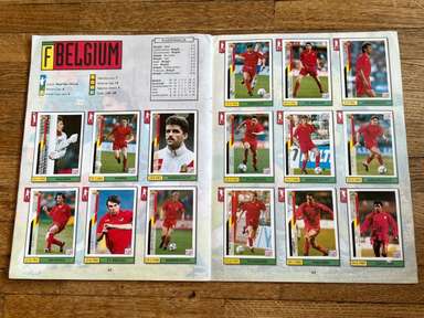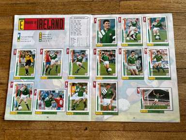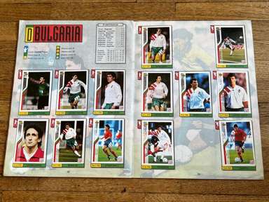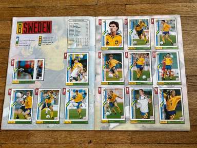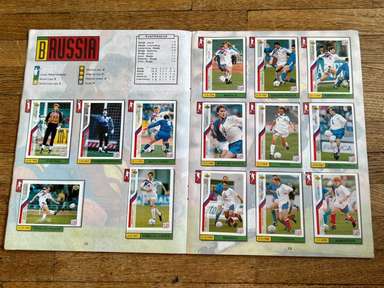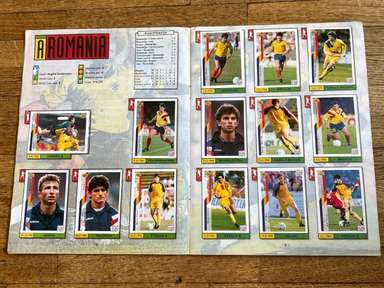 Sticker album. Footballers. Upper Deck editions, USA 94, COMPLETE, 300 stickers and badges. The images in the collection depict all the players from all the teams that took part in the final phase of the World Cup for Nations; a section dedicated to the stadiums, match venues. Participating nations: BELGIUM, BULGARIA, GERMANY, GREECE, IRELAND, ITALY, NORWAY, HOLLAND, ROMANIA, RUSSIA, SPAIN, SWEDEN, SWITZERLAND, ARGENTINA, BOLIVIA, BRAZIL, COLOMBIA, CAMEROON, MOROCCO, NIGERIA, MEXICO, UNITED STATES, SAUDI ARABIA, SOUTH KOREA. With players who have made the history of world football: Berti Vogts, Bodo Illgner, Andreas Kopke, Manfred Binz, Guido Buchwald, Thomas Helmer, Jurgen Kholer, Michael Schulz, Stfean Effenburg, Thomas Hassler, Lothat Matthaus, Andreas Moller, Mathias Sammer, Christian Ziege, Jurgen Klinsmann, Bruno Labbadia, Karlheinz Riedle, O. Thon, Basile, Goycoechea, Altamirano, Jorge Borelli, Caceres, Oscar Ruggeri, Sergio Vazquez, Victor Gorosito, Diego Maradona, Carlos Redondo, L. Rodriguez, Diego Simone, Gustavo Zapata, Gabriel Batistuta, Julio Zaomra, Van Himst, Preud'homme, De Wilde, Albert, Borkelmans, Grun, Emmers, Dirk Medved, Vicenzo Scifo, Staelens, Vanderlets, van der Heyden, Boffin, Czerniatynski, Degryse, Luc Nilis, Marc Wilmots, Parreira, Taffarel, Branco, Cafu, Ricardo Gomez, Jorginho, Roberto Carlos, Rocha, Santos, Dunga, Mauro Silva, Rai, Valber, Bebeto, Elivelton, Romario, Stoichkov, Penev, Cordoba, Valderamma, Faustino Asprilla, Clemente, Zubizarreta, Buyo, Alcorta, Camarasa, Caminero, Ferrer, Giner, Baquero, Guardiola, Guerrero, Hierro, Nadal, Munoz Gomez, Goicochea, Luis Enrique, Salinas, D. Armstrong, Paul Caligiuri, Eric Winalda, Saravakos, Manolas, Dick Advocaat, Ed de Goeij, John de Woolf, Frank de Boer, Ronald Koeman, Ruud Gullit, Wim Jonk, Frank Rijkaard, Aron Winter, Witschge,Jan Wouters,Dennis Bergkamp,Ronald de Boer,Johnny Bosman,Marc Overmars,Bryan Roy, Marco van Basten,Jack Charlton,Patrick Bonner,Stephen Staunton,Paul McGrath,Roy Keane,Ray Houghton,John Sheridan,Andy Townsend,Ronnie Whelan,John Aldridge,Tony Cascarino,Sacchi,Pagliuca, Baresi, Costacurta, Lanna, Maldini, Panucci, Albertini, Donadoni, Evani, Roberto Baggio, Casiraghi, Mancini, Signori, Gianluca Vialli, Hugo Sanchez, Garcia Aspe, George Finidi, A. Okocha, J. Flo, F. Raducioiu, Gheorghe Hagi, G. Popescu, Mostrovoi, Dobrovolski, Shalimov, Tomas Brolin, Stefan Schwarz, Andersson, Ravelli, Anders Limpar, Turkyilmaz, Chapuisat, Sforza, Pascolo, Bonvin, Sutter, Oman Biyik, Bell ...and many others. The 1994 FIFA World Cup was the fifteenth FIFA World Cup 2004, a professional football tournament organized by FIFA, held every four years. It took place in the United States of America from 17 June to 17 July 1994 and was won by Brazil, after defeating Italy in the final on penalties by 3-2. For the first time in history the world title was awarded after penalty kicks, after the regular and extra time of the final had ended with a draw (0-0). . album photographed in its entirety, page by page. the item for sale is the one visible in the photos. Album is in general condition, as per photos.