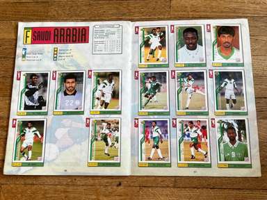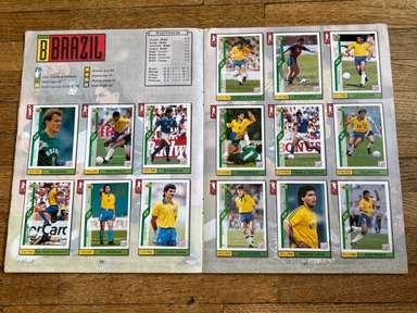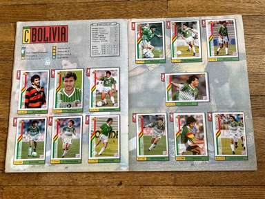 Álbum de cromos. jogadores de futebol. Edições Upper Deck, USA 94, COMPLETE, 300 autocolantes e crachás. As imagens do acervo retratam todos os jogadores de todas as seleções que participaram na fase final do campeonato do mundo de futebol por nações; uma secção dedicada aos estádios e locais de jogo. nações participantes: BÉLGICA, BULGÁRIA, ALEMANHA, GRÉCIA, IRLANDA, ITÁLIA, NORUEGA, HOLANDA, ROMÉNIA, RÚSSIA, ESPANHA, SUÉCIA, SUÍÇA, ARGENTINA, BOLÍVIA, BRASIL, COLÔMBIA, CAMARÕES, MARROCOS, NIGÉRIA, MÉXICO, ESTADOS UNIDOS I, SAUDITA ARÁBIA COREIA DO SUL. Com jogadores que fizeram a história do futebol mundial: Berti Vogts, Bodo Illgner, Andreas Kopke, Manfred Binz, Guido Buchwald, Thomas Helmer, Jurgen Kholer, Michael Schulz, Stfean Effenburg, Thomas Hassler, Lothat Matthaus, Andreas Moller, Mathias Sammer, Christian Ziege, Jurgen Klinsmann, Bruno Labbadia, Karlheinz Riedle, O. Thon, Basile, Goycoechea, Altamirano, Jorge Borelli, Cáceres, Oscar Ruggeri, Sergio Vazquez, Victor Gorosito, Diego Maradona, Carlos Redondo, L. Rodriguez, Diego Simone, Gustavo Zapata, Gabriel batistuta, Julio Zaomra, Van Himst, Preud'homme, De Wilde, Albert, Borkelmans, Grun, Emmers, Dirk Medved, Vicenzo Scifo, Staelens, Vanderlets, van der Heyden, Boffin, Czerniatynski, Degryse,Luc Nilis, Marc Wilmots,Parreira, Taffaril, Branco,Cafu,Ricardo Gomez,Jorginho,Roberto Carlos,Rocha,Santos,Dunga,Mauro Silva, Rai,valber, Bebeto,Elivelton, Romário, Stoichkov, Penev,Cordoba, Valderamma , Faustino Asprilla, Clemente, Zubizarreta, Buyo, Alcorta, Camarasa, Caminero, Ferrer, Giner, Baquero, Guardiola, Guerrero, Hierro, Nadal, Munoz Gomez, Goicochea, Luis Enrique, Salinas, D. Armstrong, Paul Caligiuri, Eric Winalda, Saravakos, Manolas, Dick Advocaat, Ed de Goeij, John de Woolf, Frank de Boer, Ronald Koeman, Ruud Gullit, Wim Jonk, Frank Rijkaard, Aron Winter, Rob Witschge, Jan Wouters, Dennis Bergkamp, Ronald de Boer, Johnny Bosman, Marc Overmars, Bryan Roy, Marco van Basten, Jack Charlton, Patrick Bonner, Stephen Staunton, Paul McGrath, Roy Keane, Ray Houghton, John Sheridan, Andy Townsend, Ronnie Whelan, John Aldridge, Tony Cascarino, Sacchi, Pagliuca, Baresi , Costacurta , Lanna, Maldini, Panucci, Albertini, Donadoni, Evani, Roberto Baggio, Casiraghi, Mancini, Signori, Gianluca Vialli, Hugo Sanchez, Garcia Aspe, George Finidi, A. Okocha, J. Flo, F. Raducioiu, Gheorghe Hagi , G Popescu, Mostrovoi, Dobrovolski, Shalimov, Tomas Brolin, Stefan Schwarz, Andersson, Ravelli, Anders Limpar, Turkyilmaz, Chapuisat, Sforza, Pascolo, Bonvin, Sutter, Oman Biyik, Bell... e muitos outros. do campeonato do mundo de futebol para seleções seniores masculinas, organizado pela FIFA de quatro em quatro anos. Decorreu nos Estados Unidos da América de 17 de junho a 17 de julho de 1994 e foi ganha pelo Brasil, depois de derrotar a Itália na final nas grandes penalidades por 3-2. Pela primeira vez na história o título mundial foi atribuído após grandes penalidades, depois de o tempo regulamentar e o prolongamento da final terem terminado empatado (0-0). . álbum fotografado na íntegra, página a página. o artigo à venda é o visível nas fotos. O álbum encontra-se em estado geral, conforme fotos. GRE
