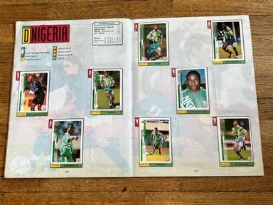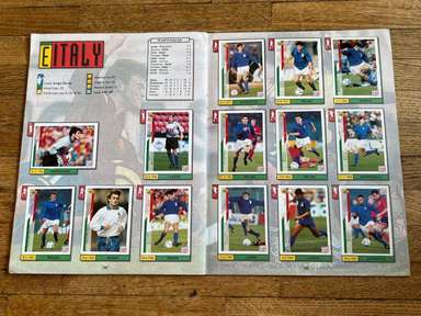 Album figurine . calciatori . edizioni Upper Deck , USA 94 ,COMPLETO , 300 tra figurine e scudetti . Le immaggini della collezione, raffigurano , tutti i giocatori , di tutte le squadre ,che presero parte alla fase finale del campionato del mondo di calcio per nazioni ; una sezione dedicata agli stadi , sedi delle partite . nazioni partecipanti : BELGIO , BULGARIA , GERMANIA , GRECIA , IRLANDA , ITALIA , NORVEGIA , OLANDA , ROMANIA , RUSSIA , SPAGNA , SVEZIA , SVIZZERA , ARGENTINA , BOLIVIA , BRASILE , COLOMBIA , CAMERUN , MAROCCO , NIGERIA , MESSICO , STATI UNITI , ARABIA SAUDITA COREA DEL SUD. Con giocatori che hanno fatto la storia del calcio mondiale :Berti Vogts,Bodo Illgner, Andreas Kopke,Manfred Binz,Guido Buchwald,Thomas Helmer , Jurgen Kholer,Michael Schulz,Stfean Effenburg ,Thomas Hassler ,Lothat Matthaus,Andreas Moller, Mathias Sammer ,Christian Ziege ,Jurgen Klinsmann ,Bruno Labbadia ,Karlheinz Riedle,O. Thon , Basile , Goycoechea , Altamirano, Jorge Borelli, Caceres,Oscar Ruggeri ,Sergio Vazquez,Victor Gorosito,Diego Maradona,Carlos Redondo ,L. Rodriguez,Diego Simone ,Gustavo Zapata, Gabriel batistuta , Julio Zaomra ,Van Himst ,Preud'homme,De Wilde,Albert , Borkelmans,Grun,Emmers,Dirk Medved ,Vicenzo Scifo ,Staelens ,Vanderlets,van der Heyden ,Boffin,Czerniatynski,Degryse,Luc Nilis , Marc Wilmots ,Parreira , Taffarel, Branco,Cafu,Ricardo Gomez ,Jorginho,Roberto Carlos,Rocha,Santos,Dunga,Mauro Silva , Rai ,valber, Bebeto,Elivelton, Romario , Stoichkov , Penev ,Cordoba , Valderamma , Faustino Asprilla , Clemente ,Zubizarreta , Buyo ,Alcorta, Camarasa,Caminero, Ferrer,Giner , Baquero , Guardiola ,Guerrero, Hierro,Nadal, Munoz Gomez,Goicochea,Luis Enrique , Salinas , D. Armstrong , Paul Caligiuri , Eric Winalda , Saravakos , Manolas , Dick Advocaat,Ed de Goeij,john de Woolf,Frank de Boer,Ronald Koeman,Ruud Gullit,Wim Jonk,Frank Rijkaard,Aron Winter, Rob Witschge,Jan Wouters,Dennis Bergkamp ,Ronald de Boer,Johnny Bosman,Marc Overmars,Bryan Roy, Marco van Basten , Jack Charlton , Patrick Bonner , Stephen Staunton , Paul McGrath , Roy Keane , Ray Houghton , John Sheridan , Andy Townsend , Ronnie Whelan , John Aldridge , Tony Cascarino , Sacchi , Pagliuca, Baresi, Costacurta, Lanna, Maldini , Panucci, Albertini , Donadoni , Evani, Roberto Baggio , Casiraghi , Mancini , Signori , Gianluca Vialli , Hugo Sanchez , Garcia Aspe , George Finidi , A. Okocha , J. Flo , F. Raducioiu , Gheorghe Hagi , G. Popescu , Mostrovoi ,Dobrovolski ,Shalimov ,Tomas Brolin , Stefan Schwarz ,Andersson , Ravelli , Anders Limpar , Turkyilmaz , Chapuisat , Sforza , Pascolo , Bonvin , Sutter , Oman Biyik , Bell ...e molti altri .La Coppa del Mondo Fifa del 1994 è stata la quindicesima edizione del campionato mondiale di calcio per squadre nazionali maggiori maschili organizzato dalla FIFA ogni quattro anni. Si svolse negli Stati Uniti d'America dal 17 giugno al 17 luglio 1994 e fu vinto dal Brasile, dopo aver sconfitto l'Italia in finale ai rigori per 3-2. Per la prima volta nella storia il titolo mondiale veniva assegnato dopo i tiri di rigore, dopo che i tempi regolamentari e supplementari della finale si erano conclusi col risultato di parità (0-0). . album fotografato integralmente , pagina per pagina . l'oggetto in vendita e' quello visibile nelle foto . Album è in condizioni generali, come da foto. ENG