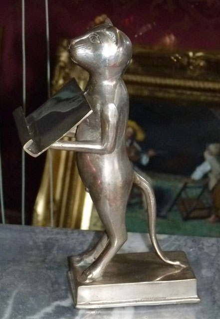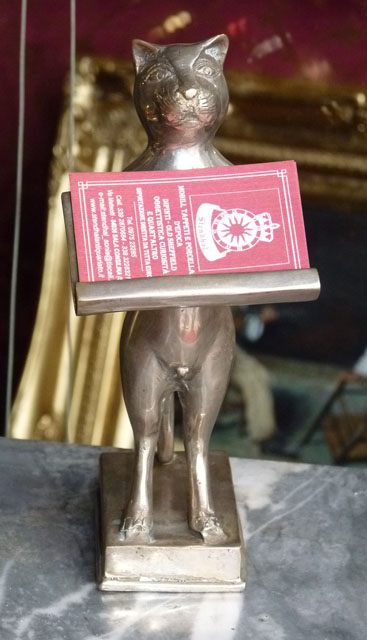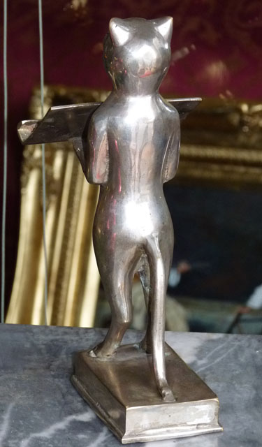 Art.MC07 Scultura "Gatto Portabiglietti" a Cera Persa Rivestita in Argento