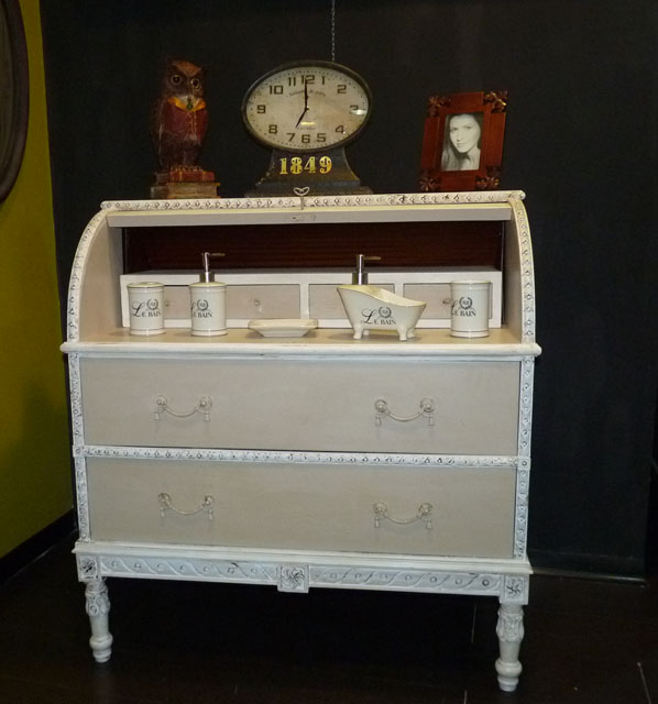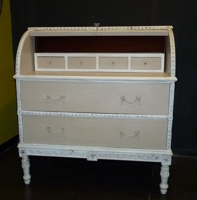 Art.TX54 Cassettone Secretaire a Rullo Decapato Shabby Chic