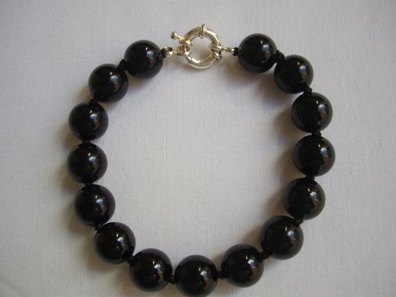 Bracciale in Onice nera. Sfere mm 12 ( 15 ) + chiusura rotonda in metallo anallergico diametro mm 13 + nodi ( 14 ).