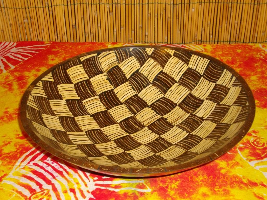 Ciotola con pezzetti di legno di cocco assemblati con resina nera.Articolo fatto a mano da abili artigiani Balinesi. Peso : gr 753 circa Dimensione : h cm 9 diametro cm 35 circa Provenienza : Indonesia Bali Codice : don14b3