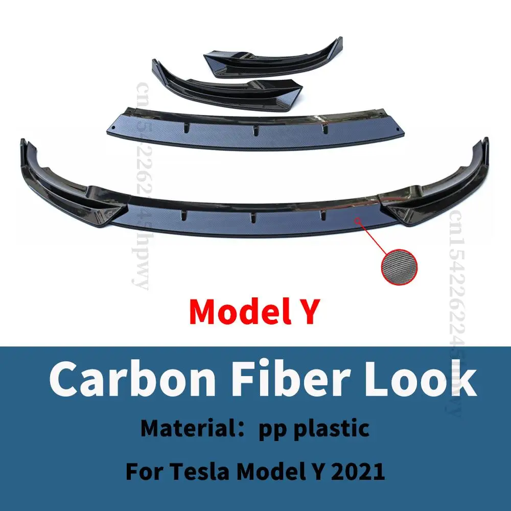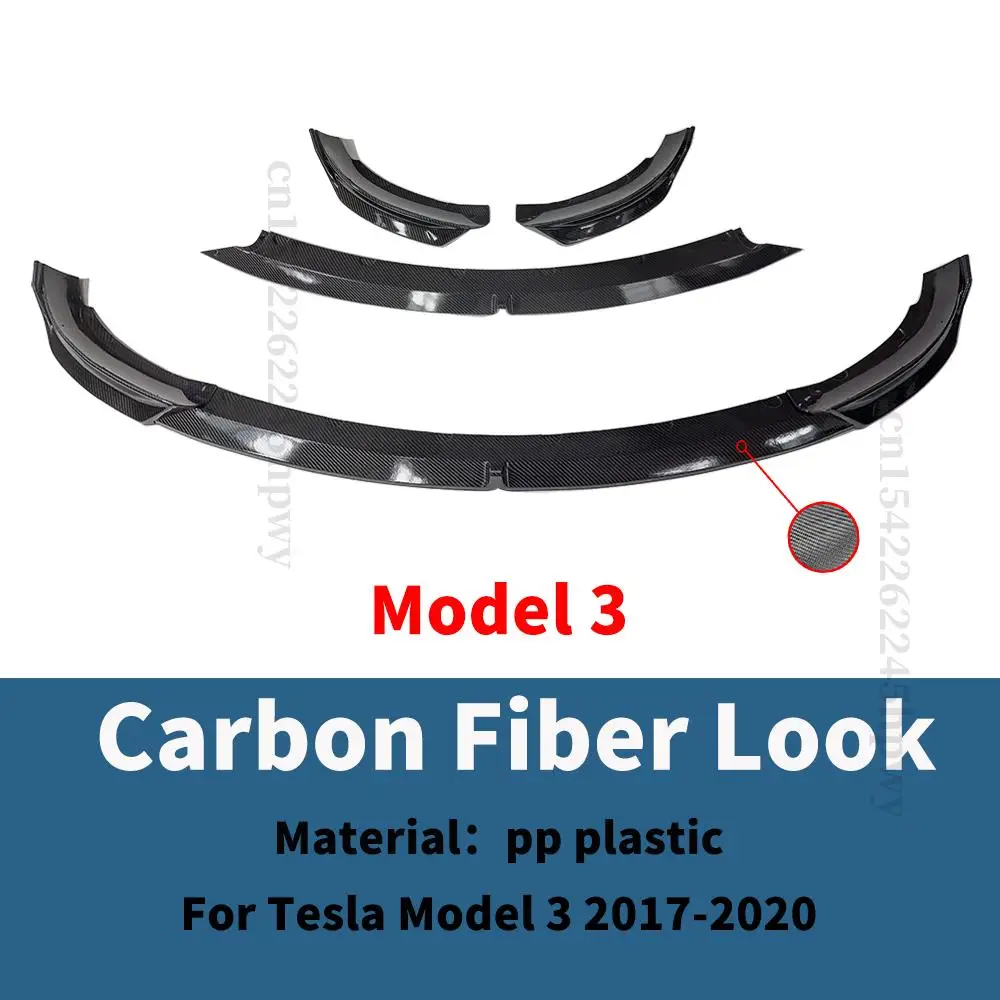 Front Bumper Lip Lower Chin Carbon Fiber Body Kit Spoiler Deflector Accessories For Tesla Model 3 Y 2017 2018 2019 2020 2021