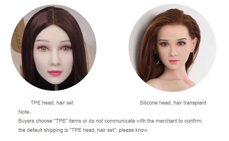 Sex doll head real photo Note Buyers choose "TPE" items or do not communicate with the merchant to confirm, the default shipping is "TPE head, hair set", please know. MAINTENANCE 1. Your doll should be cleaned every time use,with mild shower foam. The head should be taken off and cleaned separately. 2. Please keep the head away from water. When the skin becomes sticky, please clean with bath powder. Dry and use baby powder to make her smooth. 3. Please dry with a towel after cleaning and apply baby powder. DO NOT use a hair dryer. 4. Use mild shampoo to wash the hair and let it dry naturally. 5. Suggestion: please put on clothes for the doll to keep clean. 6. Be careful when moving the doll, avoid dropping / knocking / breaking.