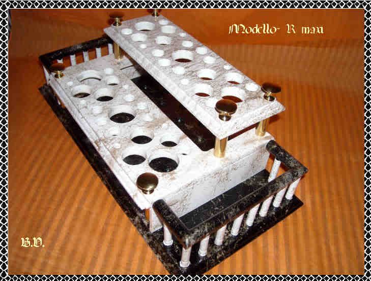 Questo portapennelli mi è stato richiesto espressamente da mia moglie, perchè quelli che ho costruito fino ad ora per lei erano troppo piccoli e non contenevano abbastanza particolari. E' incredibile quante cose usano le donne per farsi belle. Comunque secondo mè se lo fanno lo fanno per noi uomini, e di questo non dobbiamo fare altro che ringraziarle.
